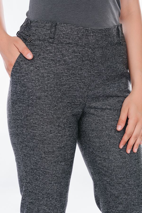 Брюки в городском стиле, без застежки. Детали: спереди имитация гульфика, боковые карманы.