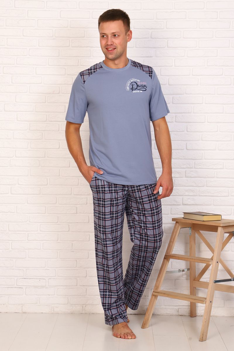 Домашний мужской костюм. В комплекте футболка классического кроя с коротким рукавом и круглой горловиной. Прямые брюки, с карманами. Отличный и удобный вариант на каждый день.