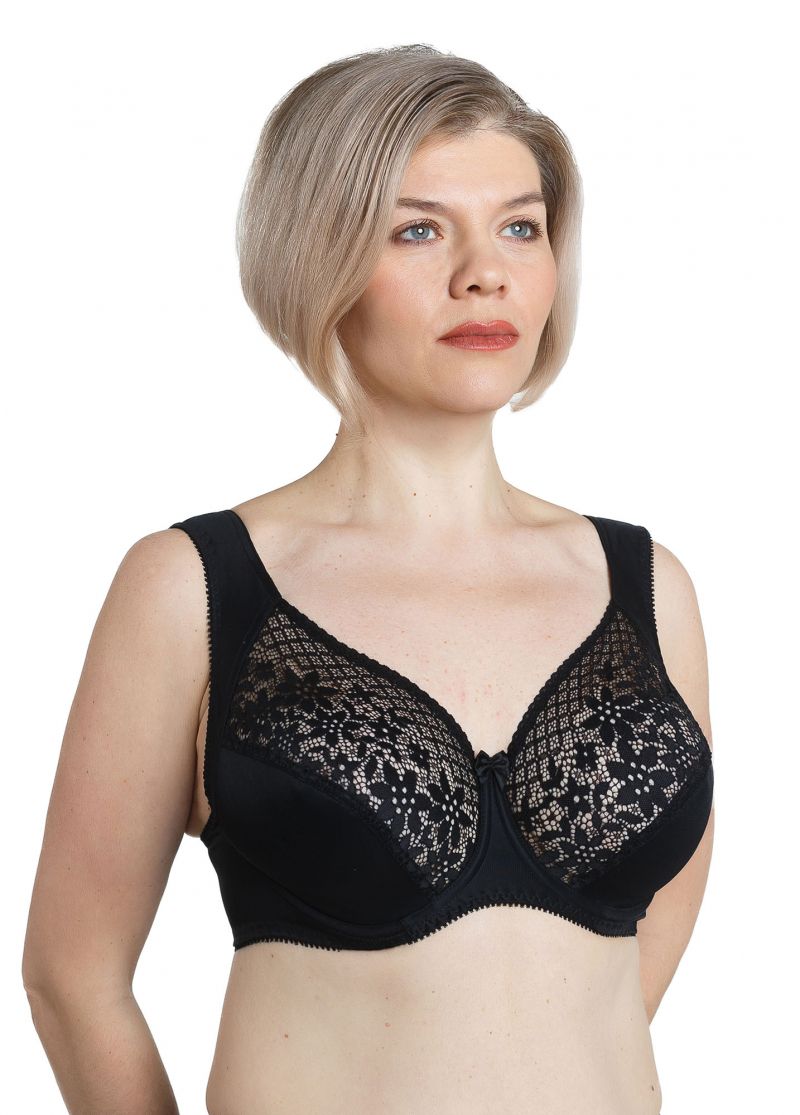 Классический бюстгальтер с комбинированной мягкой чашкой на хлопковой подкладке, боковая кокетка и усиленная бретель хорошо держат грудь и снижают нагрузку на плечевой пояс, на каркасах.