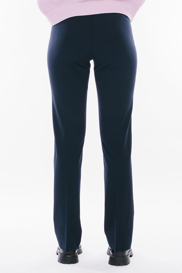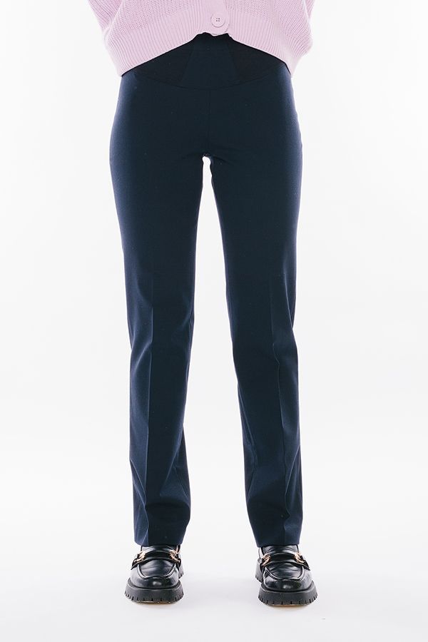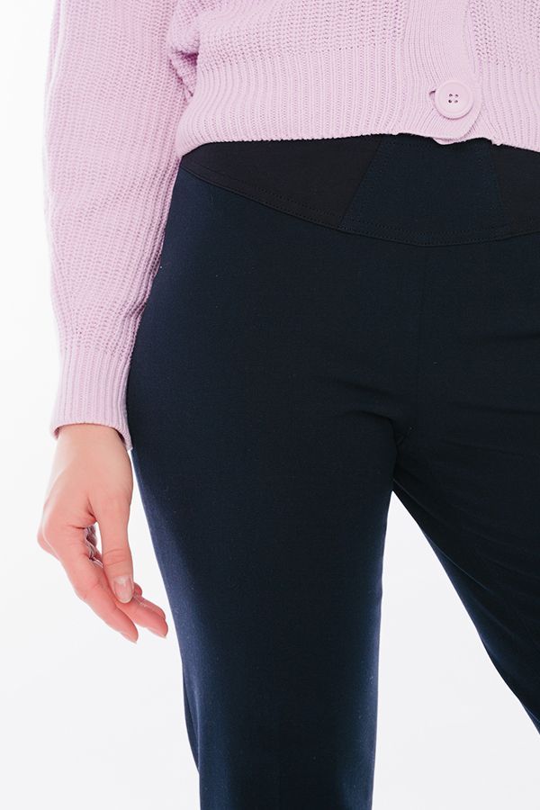 Брюки классические со стрелками, без застежки, на поясе из эластичной ткани. Плотная ткань, подходит для холодного времени года. Детали: на эластичном поясе комбинированная отделка (в поясе резина 4,0 см). Практичная модель для офисных сотрудников. Идеальная посадка на фигуры больших размеров.