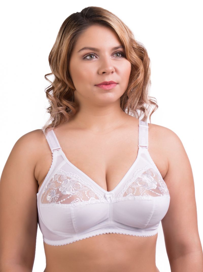 Комфортный в носке бюстгальтер на каждый день обеспечит хорошую поддержку груди, вышитое кружево на верхней чашке подчеркивает элегантность модели, комбинированная мягкая чашка с боковой кокеткой, нижняя часть чашки на хлопковой подкладке, без каркасов.