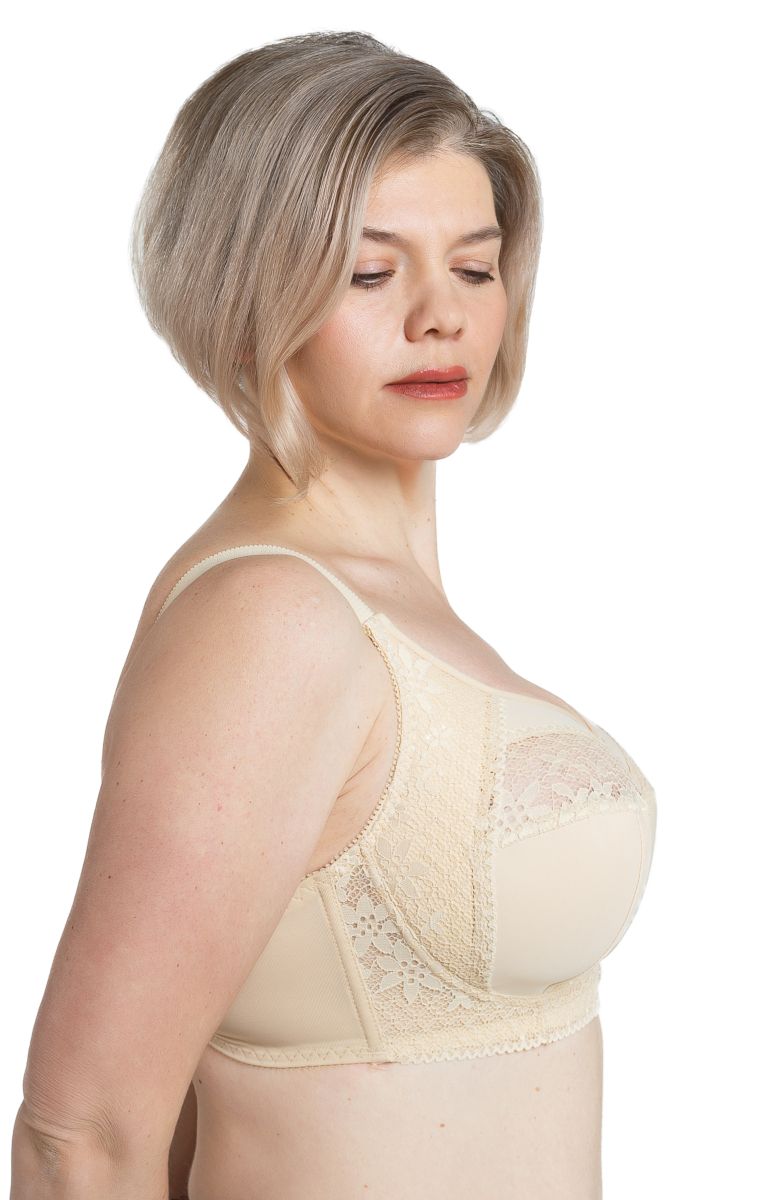 Комфортный в носке бюстгальтер на каждый день, комбинированная мягкая чашка с боковым усилителем , без каркасов. Для дополнительного комфорта в носке боковые части пояса усилены стержнями.
