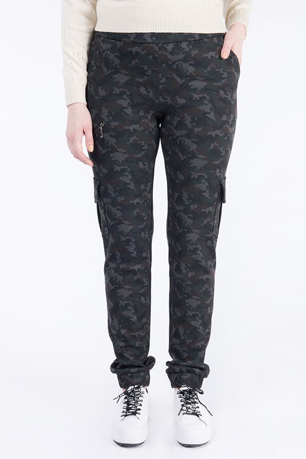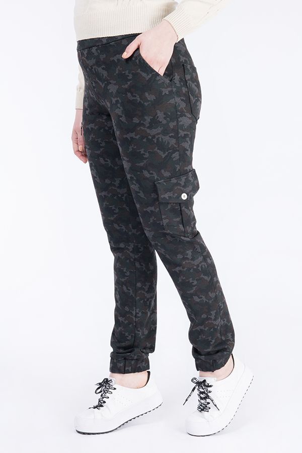 С боку, в районе колена, накладные карманы с клапаном, на пуговице.