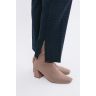 Детали: Спереди застежка на молнию и пуговицу, карманы с горизонтальным входом, с отделкой из эко-кожи. По спинке вытачки, в поясе резина на сборке, на поясе шлевки. В боковых швах разрез (14 см).