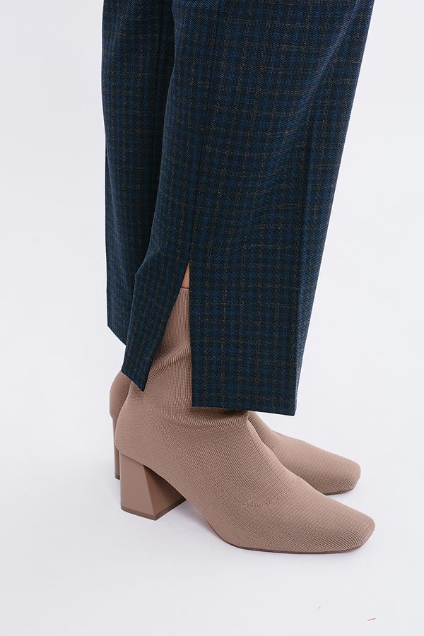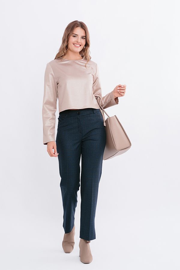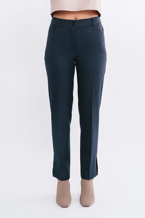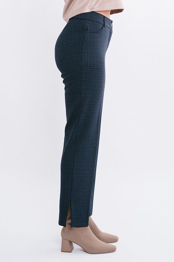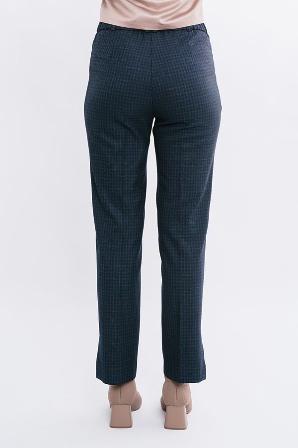 Комфортная модель брюк из темно-синей ткани в клетку.
