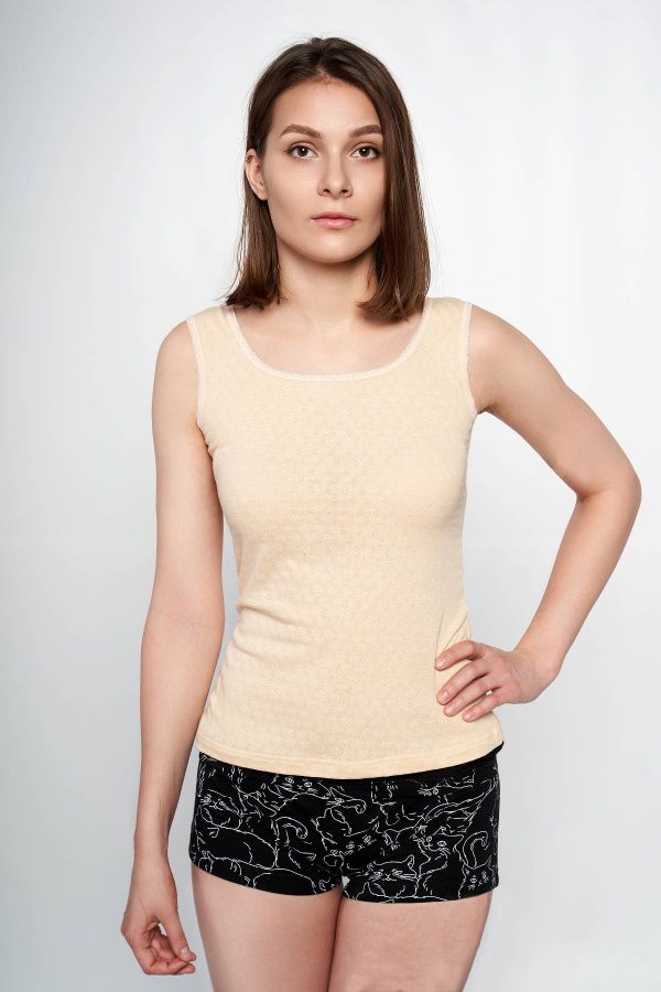 Майка женская. Срезы горловины и пройм обработаны эластичным кружевом (1см)