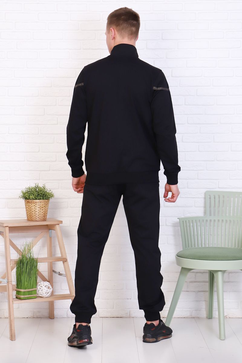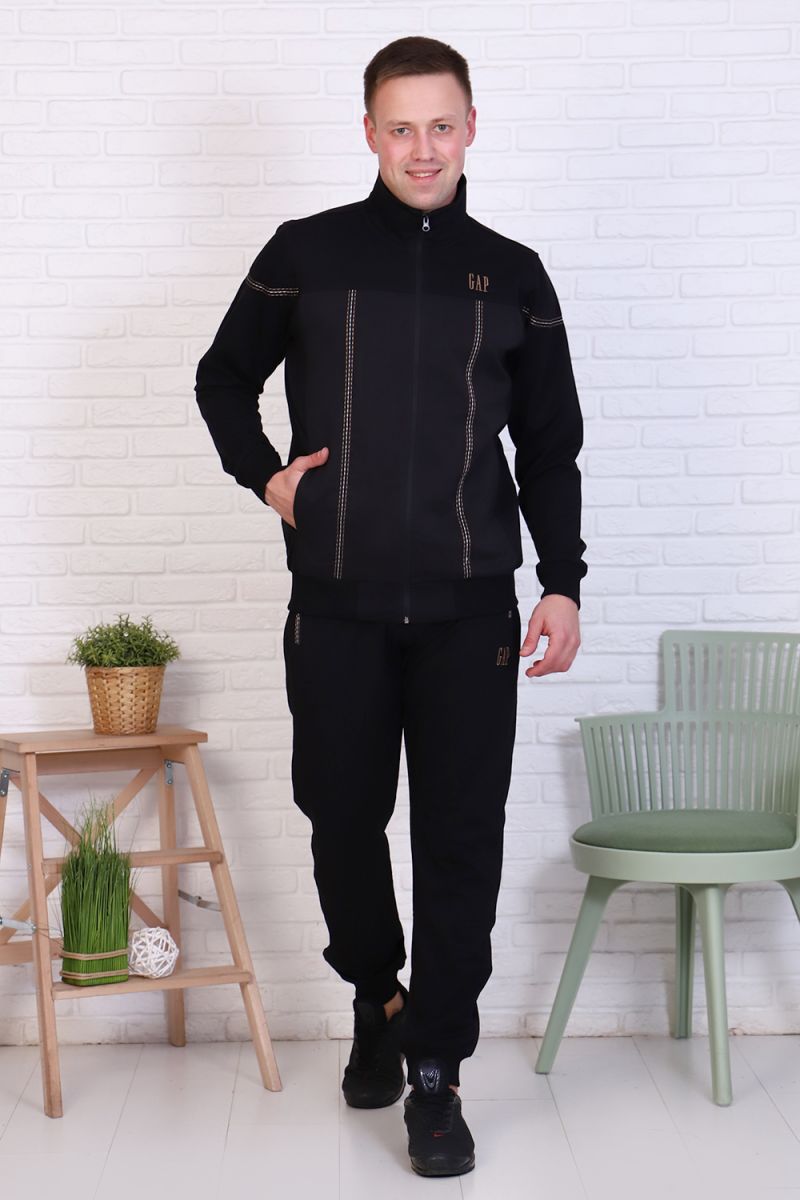 Костюм мужской изготовлен из ткани неброских оттенков. Ткань не линяет и не теряет своих свойст при многократных стирках и длительной носке. Костюм универсального использования, как в помещении, так и на свежем воздухе. Отличный вариант для занятия спортом или прогулок на свежем воздухе в весенне-осенний периоды и период летнего похолодания. Костюм свободного кроя, не стесняет движения. Для удобства брюки и толстовка имеют манжеты. Отделка в виде цветной строчки добавляет образу индивидуальность. Костюм (и на толстовке, и на брюках) дополнен внутренними карманами без молнии, дополнительно сзади справа на брюках нашит карман. Воротник-стойка послужит качественной защитой от ветра. Застежка толстовки - качественная молния по всей длине, позволяющая регулировать уровень защищенности в зависимости от погодных условий. Мужчины разных возрастов в представленном костюме будут выглядеть стильно и мужественно.