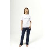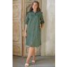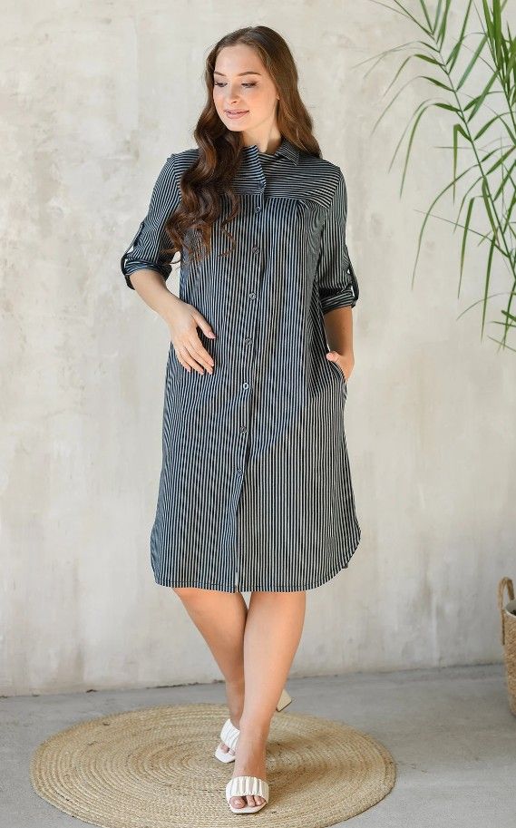Изделие прямого силуэта, длиной до линии колена. Застёжка на петли – пуговицы. Линия борта обработана. Рукав - сафари втачной длиной ¾, с притачной патой и манжетой. Изделие с отложным втачным воротником с острыми концами. На полочках и спинке обработаны кокетки. Халат с карманами в боковых швах и фигурной линией низа изделия .