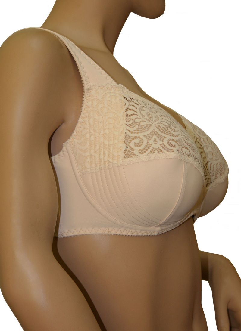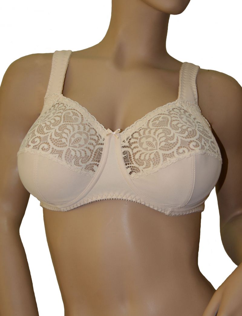 Универсальный в носке бюстгальтер на каждый день обеспечит хорошую поддержку груди, Комбинированная чашка из эластичного кружева и трикотажного полотна, нижняя часть чашки на подкладке из хлопкового полотна, на каркасах.