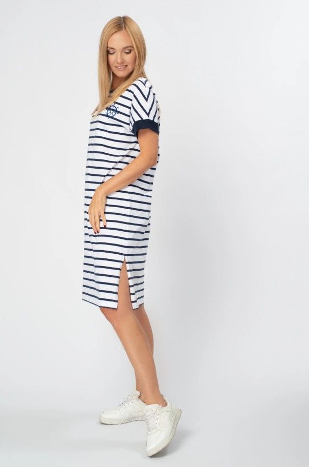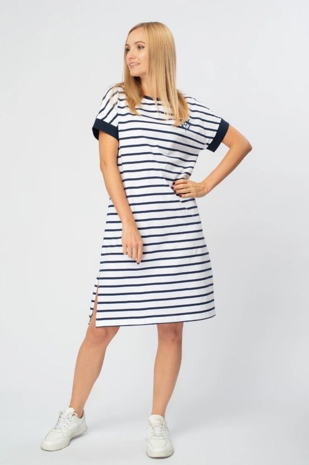 Модное платье из хлопка в спортивном стиле уместно в большинстве случаев и подходит на любую фигуру, поэтому является базой для современного женского гардероба. Это платье - идеальный выбор для женщин, которые ценят комфорт и стиль. Оно подойдет, как для повседневного образа, так и для занятия спортом.