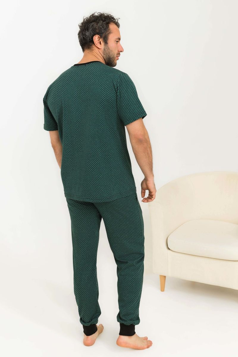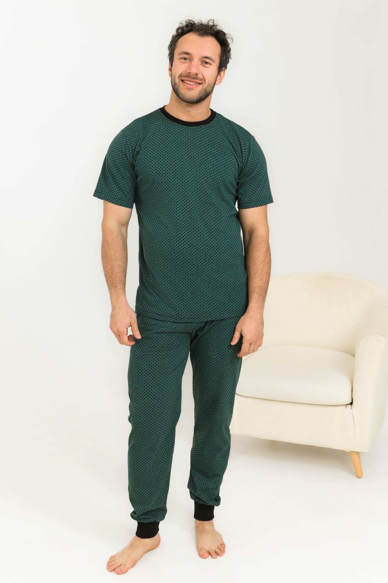 Костюм домашний из 100% хлопка. Очень уютный и удобный. Горловина и манжеты брюк выполнены из эластичной резинки-кашкорсе. Благодаря наличию лайкры в манжетах после стирки они не вытягиваются. Карманы в боковых швах брюк. Пояс на плотной резинке 2 см. Костюм можно с удовольствием носить на любимой даче.