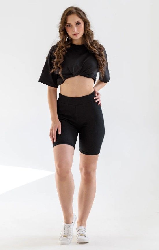 Велосипедки легко сочетаются с кроп-топом, майкой или футболкой.