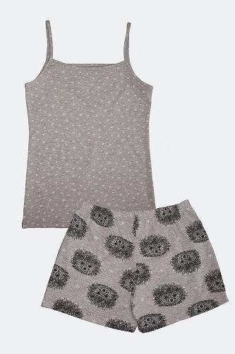 Комплект для дома состоит из майки - топа и коротких облегающих шорт