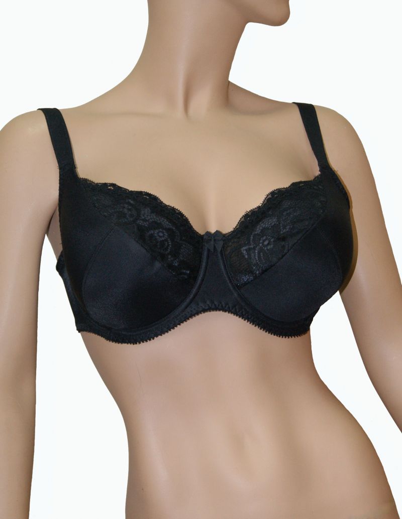 Комфортный бюстгальтер хорошо приподнимает и фиксирует грудь, чашка из не эластичного полотна и эластичного кружева, кружево усилено подкладкой из эластичной сетки, нижняя часть чашки на поролоне, дублированная хлопковым полотном, на каркасах.