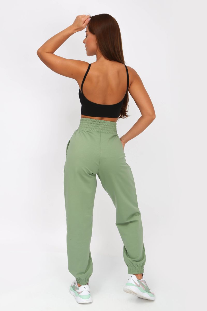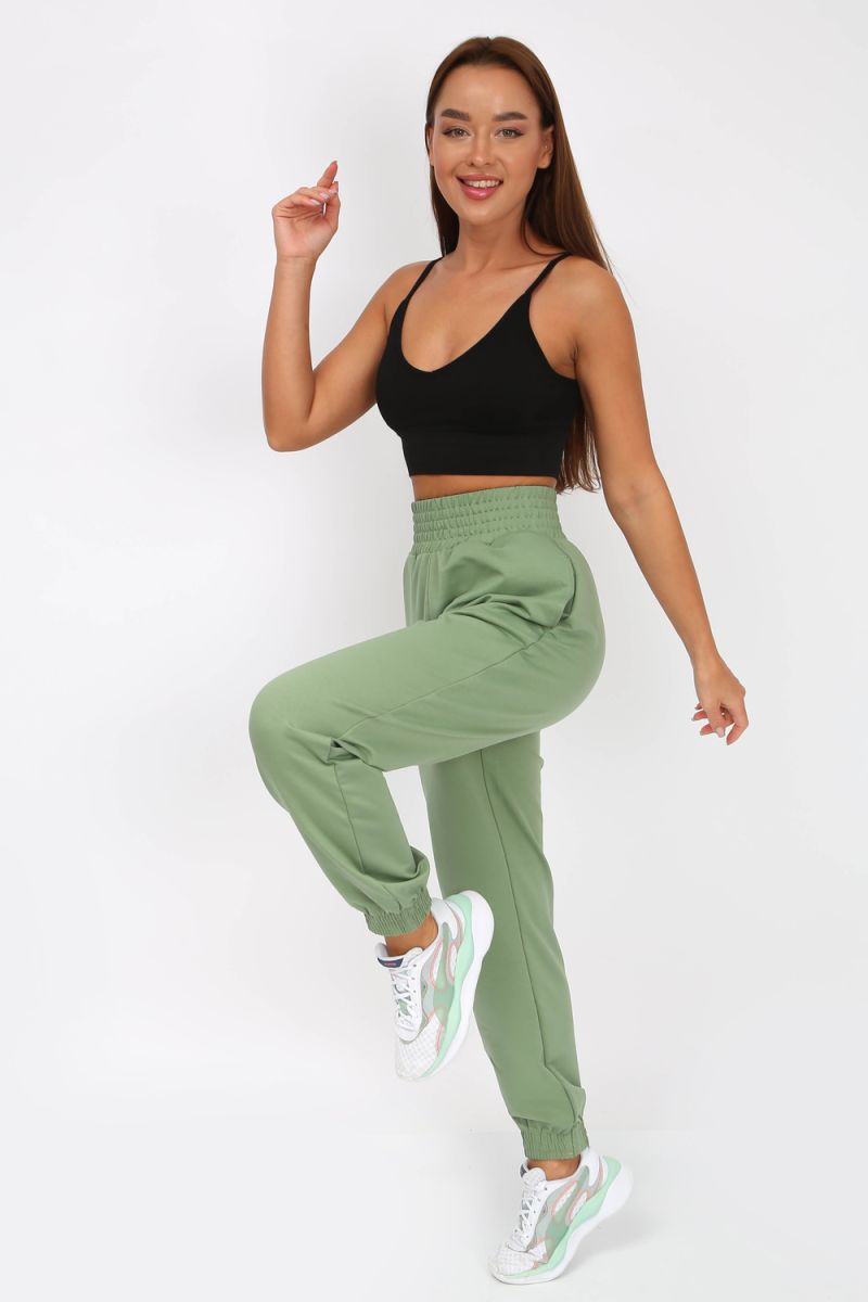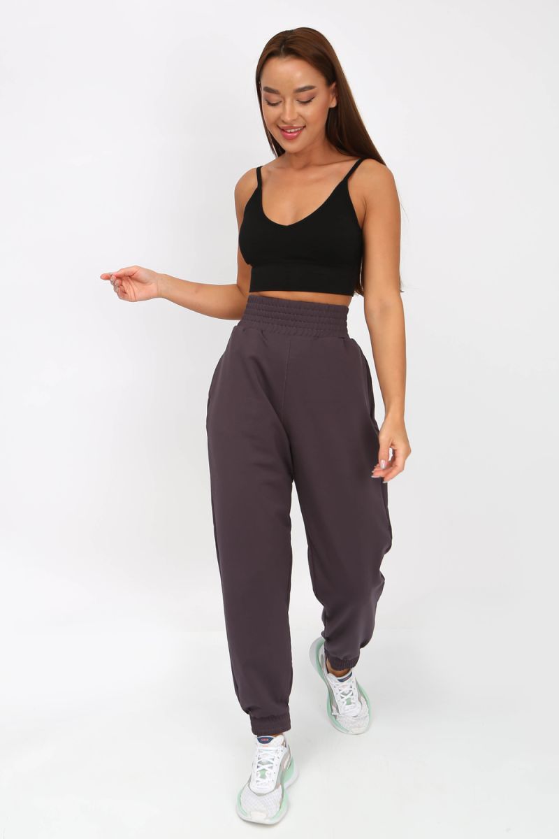 Брюки женские спортивные трикотажные, с высокой посадкой на резинке, по бокам карманы с отрезным бочкам, низ также на резинке. Отличная посадка, хорошо подойдут высоким и невысоким девушкам. Базовая модель подойдет спорта, для дома, для отдыха.