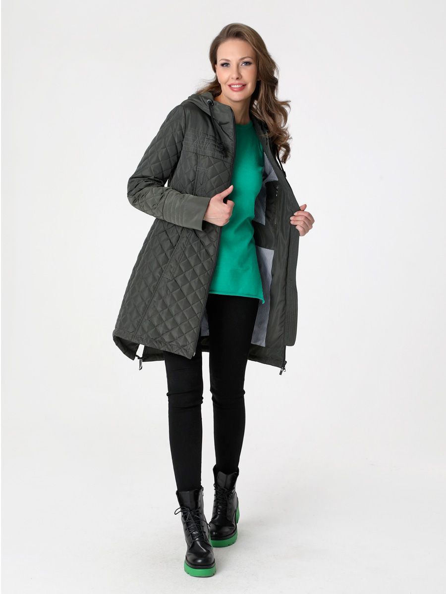 Демисезонная куртка-парка полуприлегающего силуэта с втачными рукавами и застежкой на двухзамковую молнию.