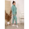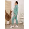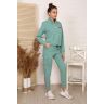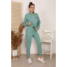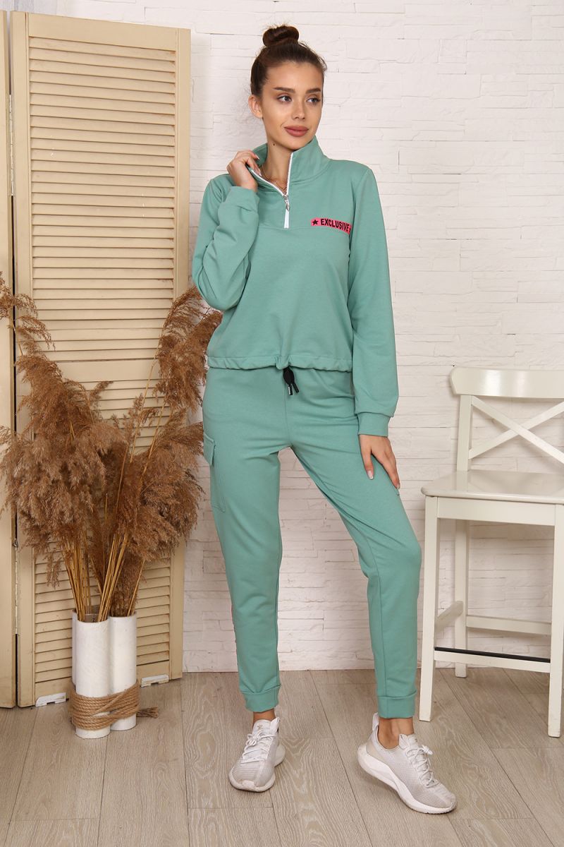 Женский комплект спортивного костюма: олимпийка и брюки. Олимпийка до линии бедер с центральной застежкой на тесьму-молнию контрастного цвета. Полочки и спинка с рельефами, выходящими из плечевых швов. Воротник - стойка. Брюки спортивные прямые. Верхний срез обработан притачным поясом с эластичной тесьмой и шнуром. Имеются боковые карманы на передних половинках брюк.