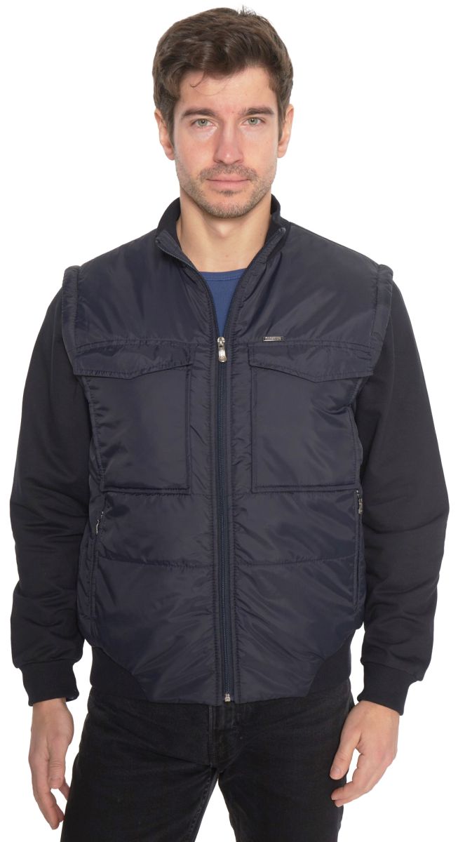 Классическая прямая модель с двумя нагрудными карманами на молниях и воротником «стойкой». Передняя часть отделана плащёвкой. Манжеты и пояс сзади выполнены из рибаны. Представлены в широкой цветовой гамме в 3-х размерных рядах.