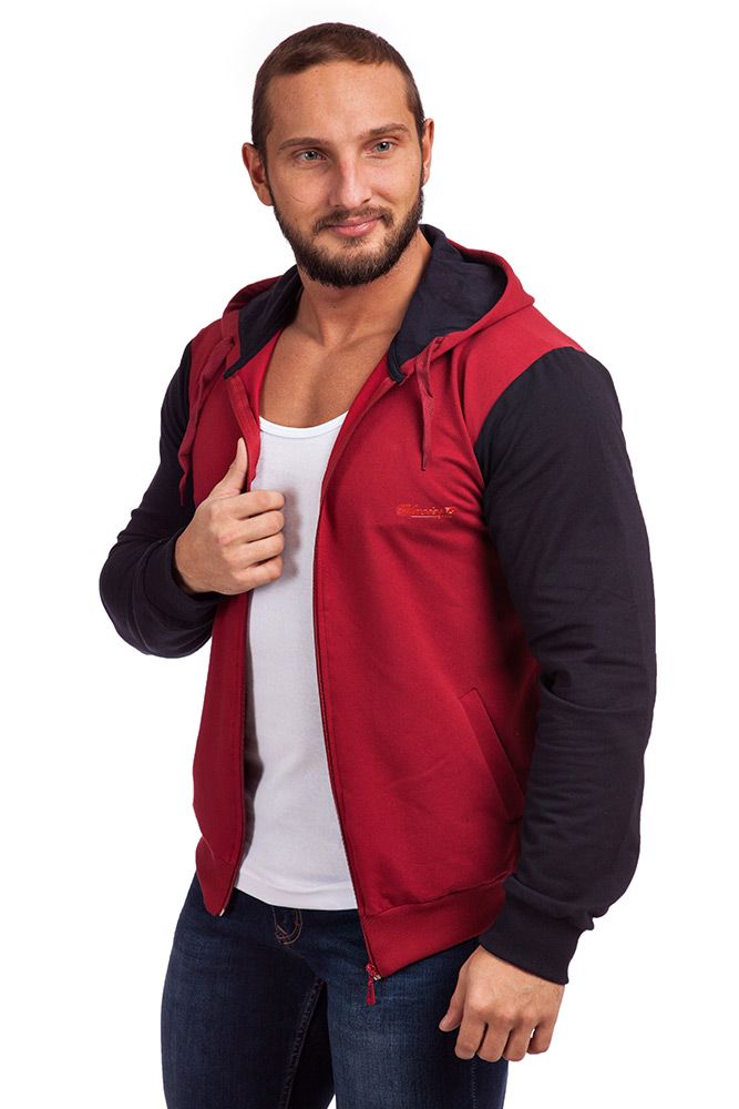 КОМБИ - рукава контрастного цвета. Застежка - молния по всей длине толстовки, капюшон с контрастной подкладкой из хлопка, низ и рукава на манжете из резинки, на груди небольшая эмблема,