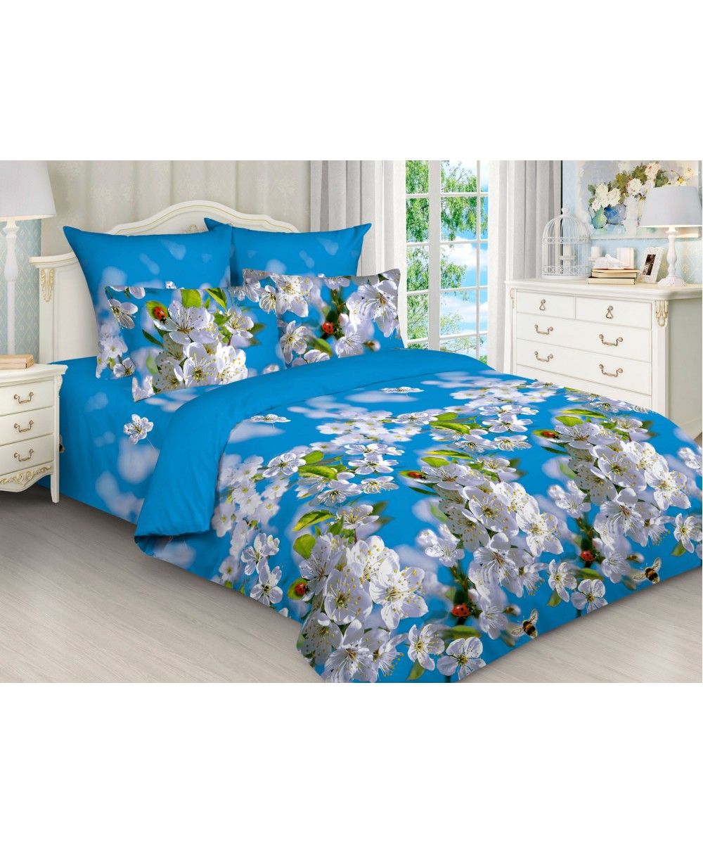 Комплект постельного белья «Анютины глазки на голубом» из коллекции «Сонвиль» выполнен из бязи, известной своими гигроскопичными качествами.
