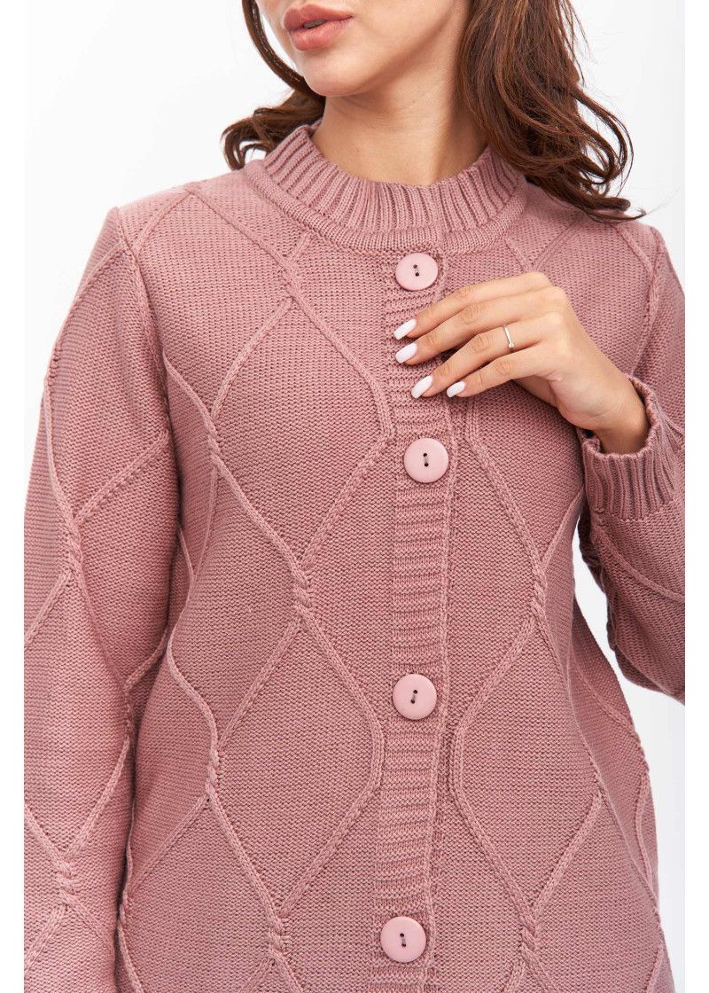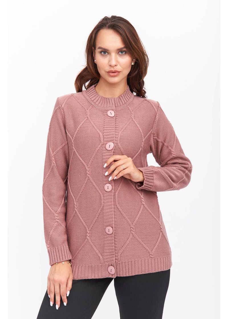 Женский вязаный жакет свободного силуэта на пуговицах. Рукава втачные, полной длины. Круглая горловина.