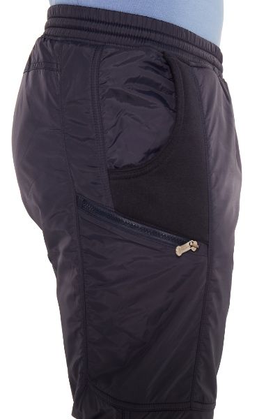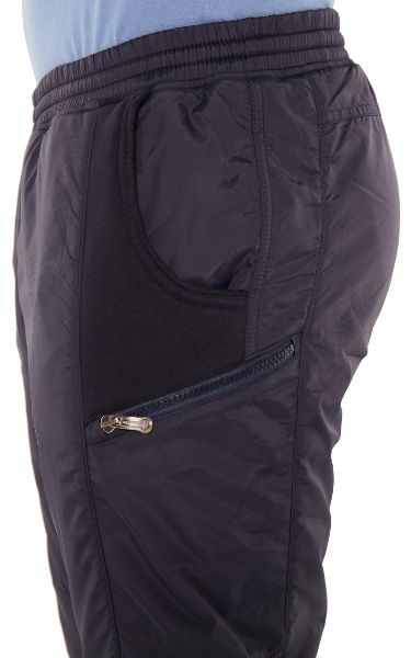 Зимние комбинированные брюки с поясом на резинке.