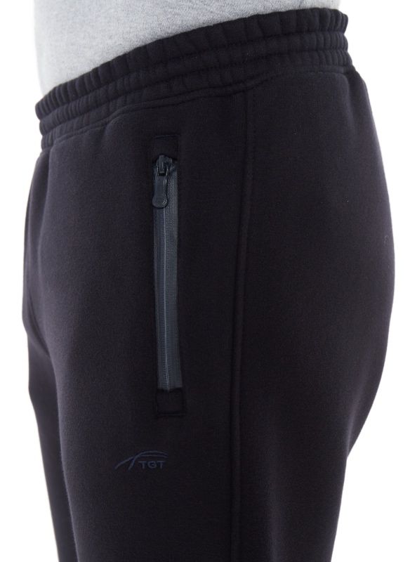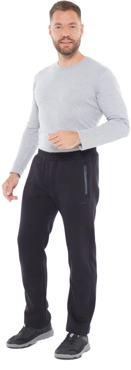 Трикотажные брюки с поясом на резинке. Начёс с внутренней стороны полотна обеспечивает прекрасную защиту от холода, дополнительная обработка наружной поверхности придаёт бархатистость. Для дополнительной фиксации в пояс с внутренней стороны вставлен шнурок. Брючины заужены книзу. Передние карманы фиксируются прорезиненными молниями. Под левым карманом вышивка в фирменном стиле в тон основного материала.