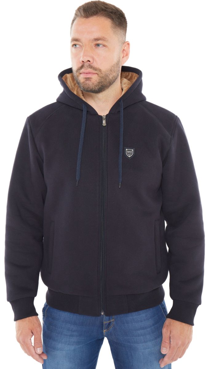 Утеплённая трикотажная куртка с поясом из кашкорсе и капюшоном. Утеплитель - искусственный мех "вельбоа". Плечи выделены угловыми рельефами. С левой стороны расположен шеврон в фирменном стиле. Ширина капюшона регулируется шнурком. Передние карманы на молниях под листочками. На внутренней стороне справа – карман, фиксирующийся молнией.