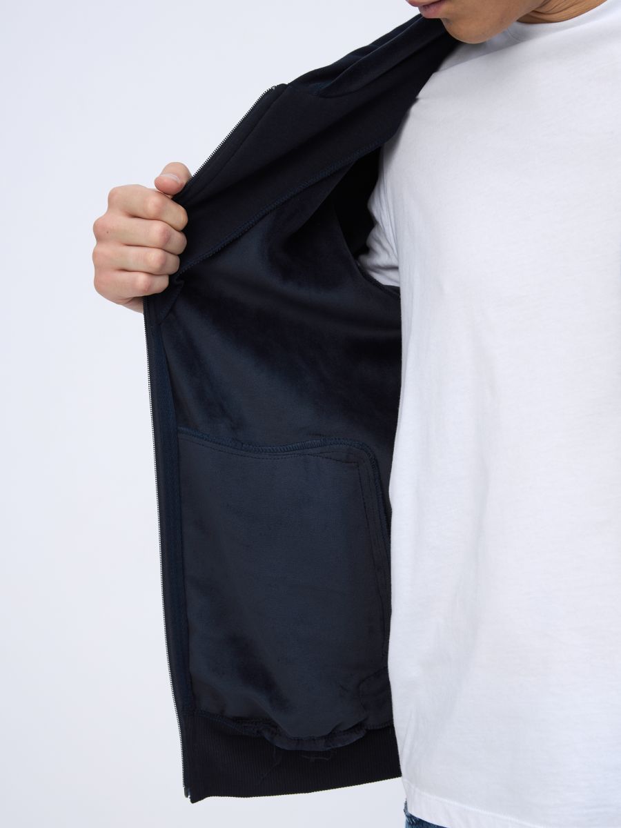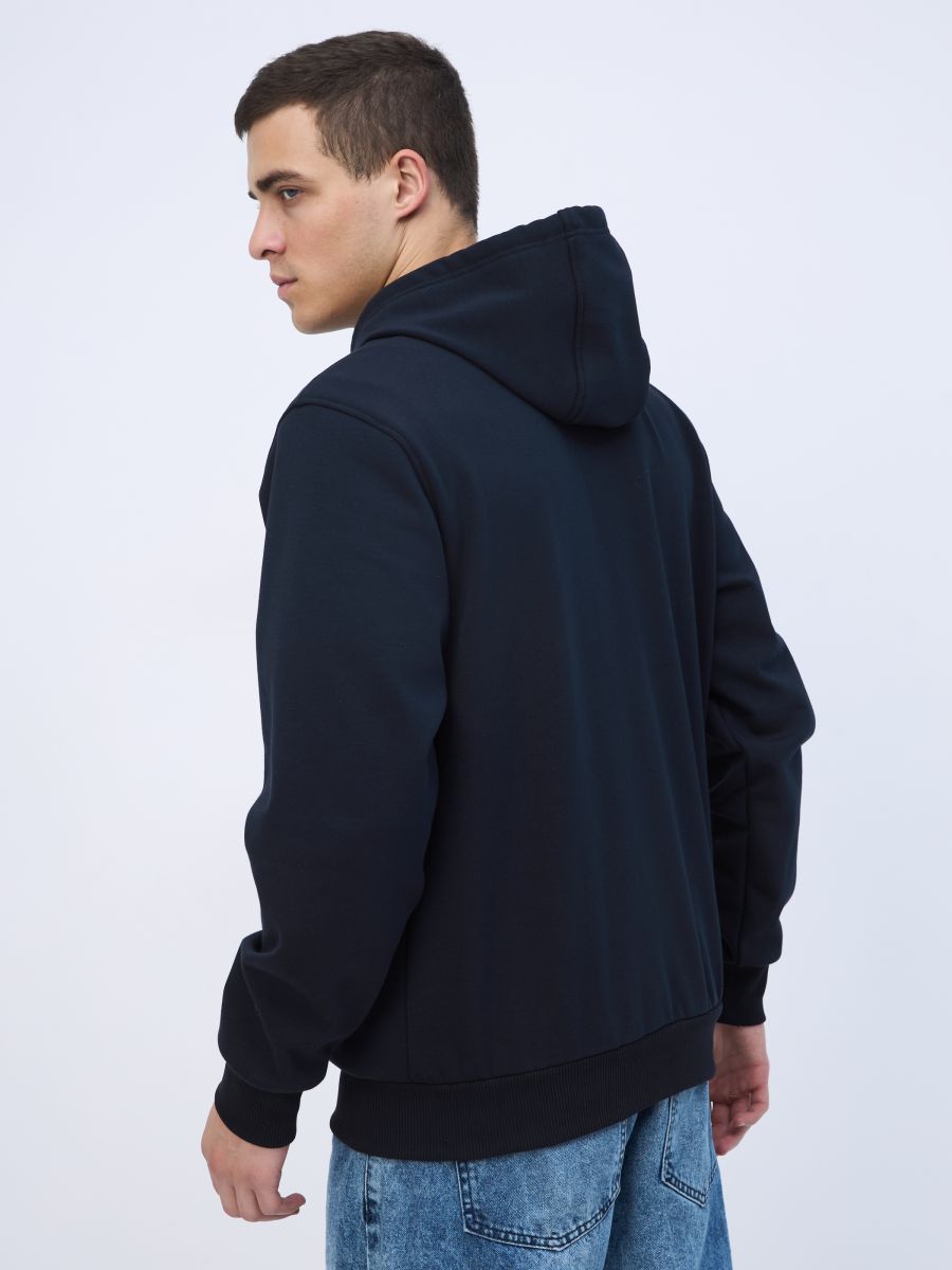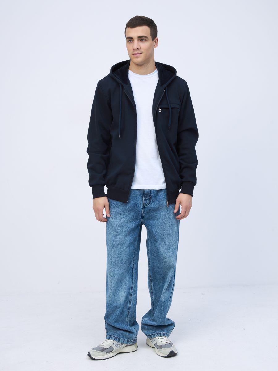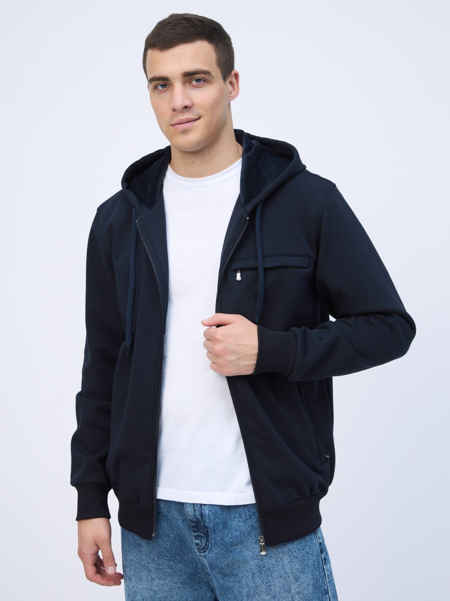 Изделие удобное и практичное. Может использоваться как верхняя одежда в качестве утеплённой ветровки или куртки в межсезонье и нехолодную зиму. Тёмно-синий цвет толстовки выигрышно смотрится с джинсами.