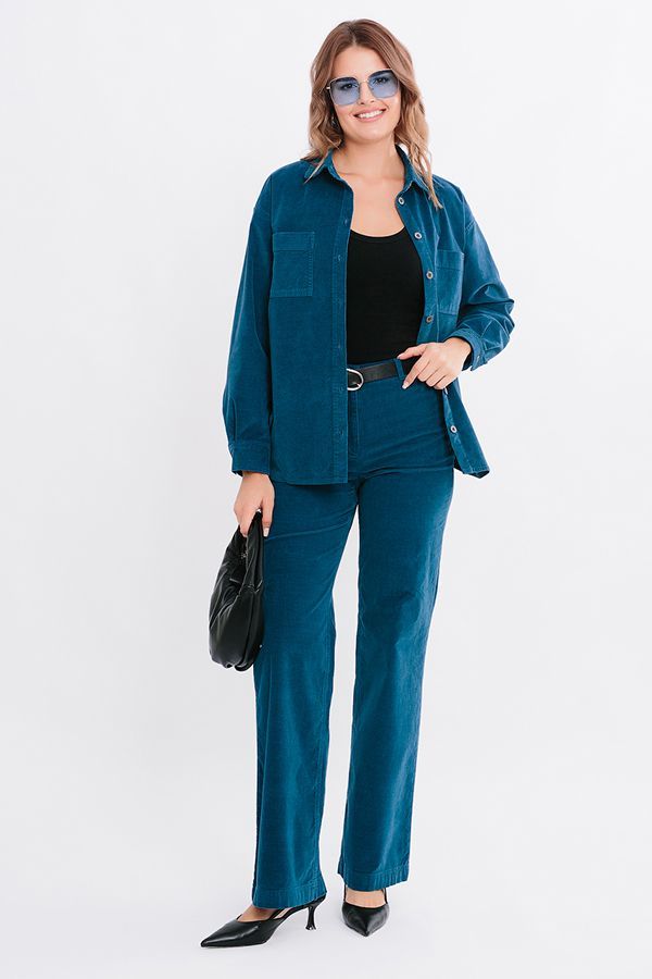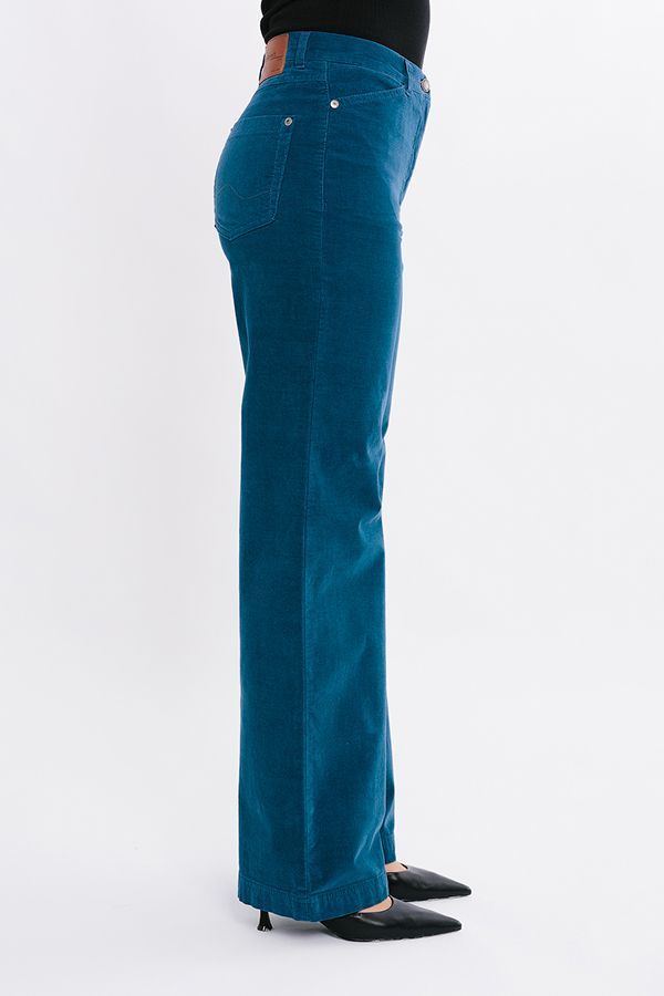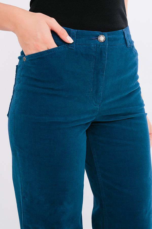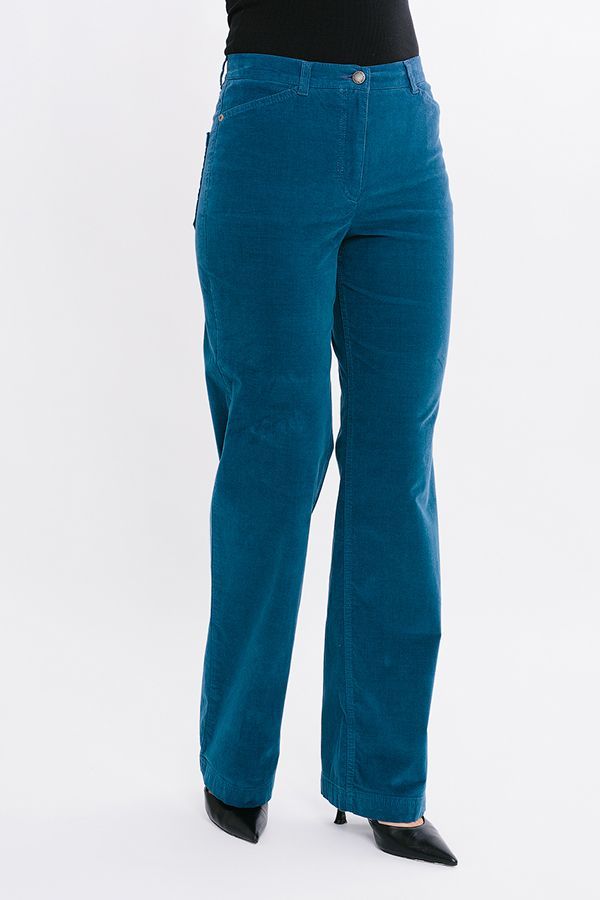 Прямые джинсы из микровельвета. Детали: спереди застежка на болт и молнию, оригинальные боковые карманы с хольнитенами, сзади под кокеткой накладные карманы с фигурной строчкой, на поясе шлевки.