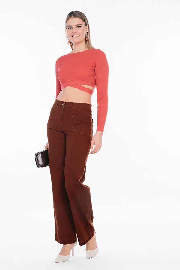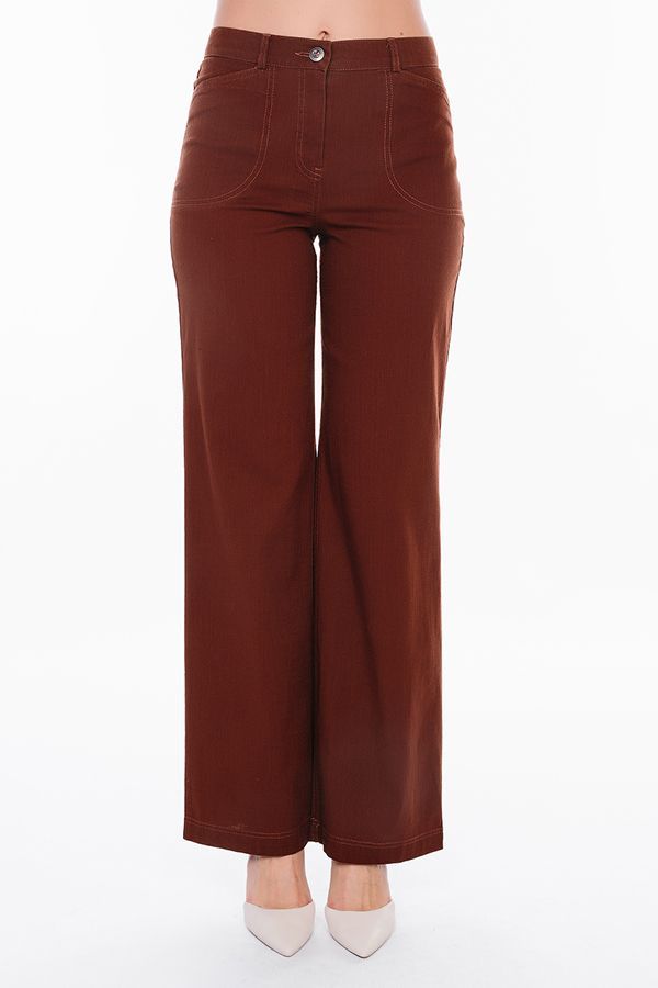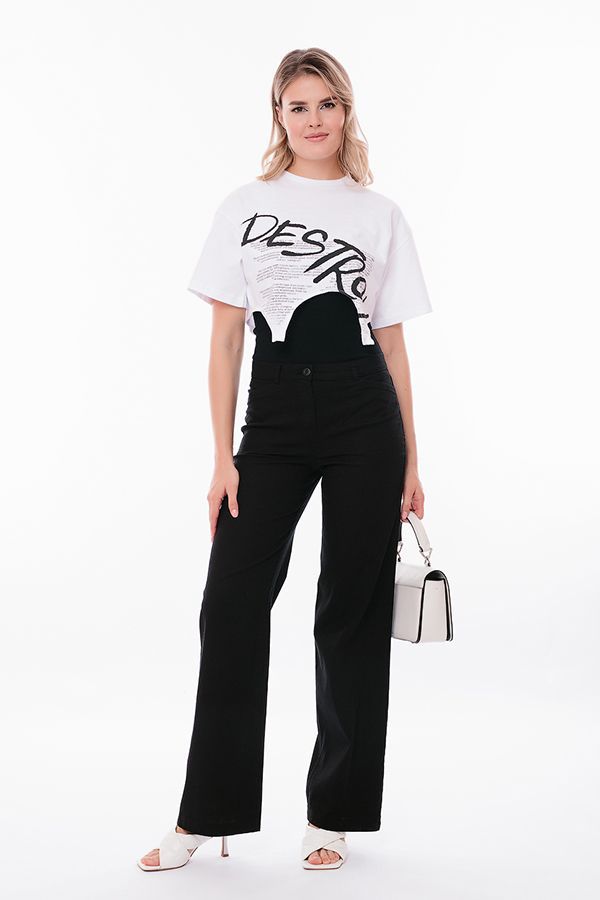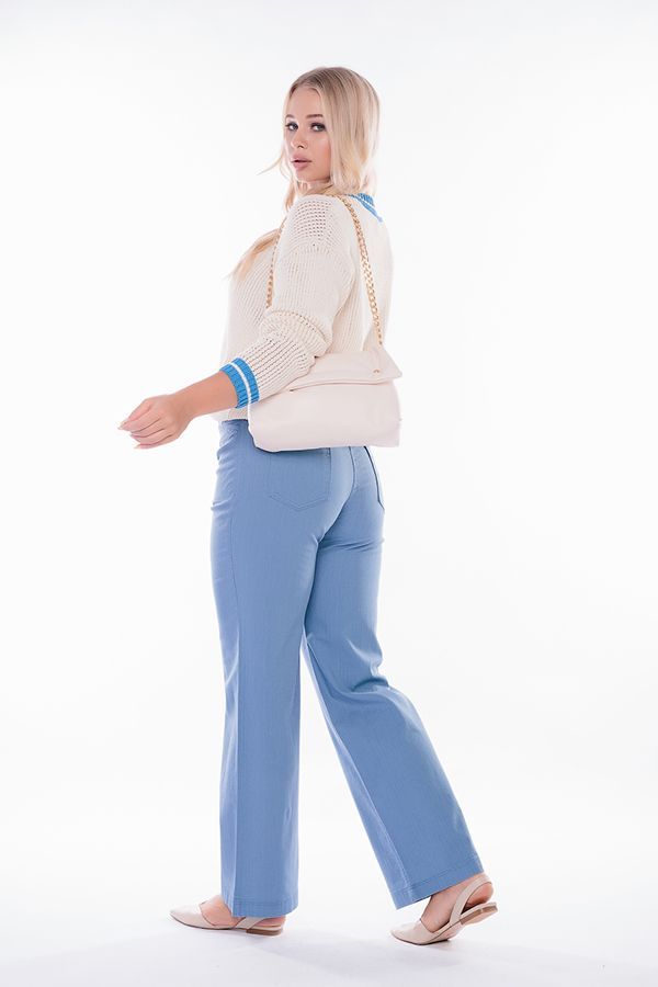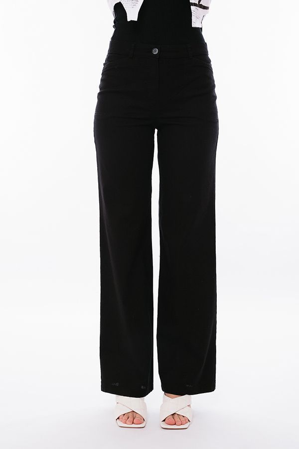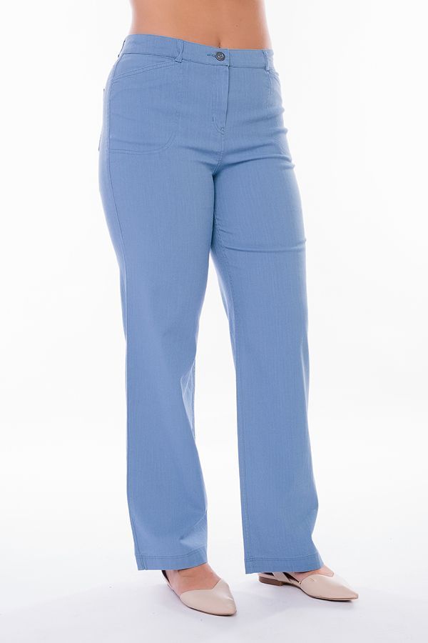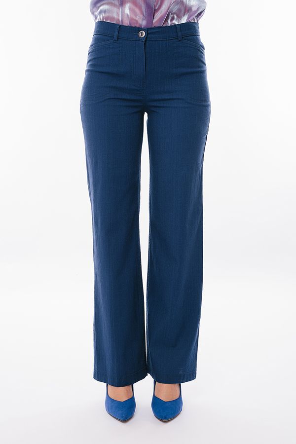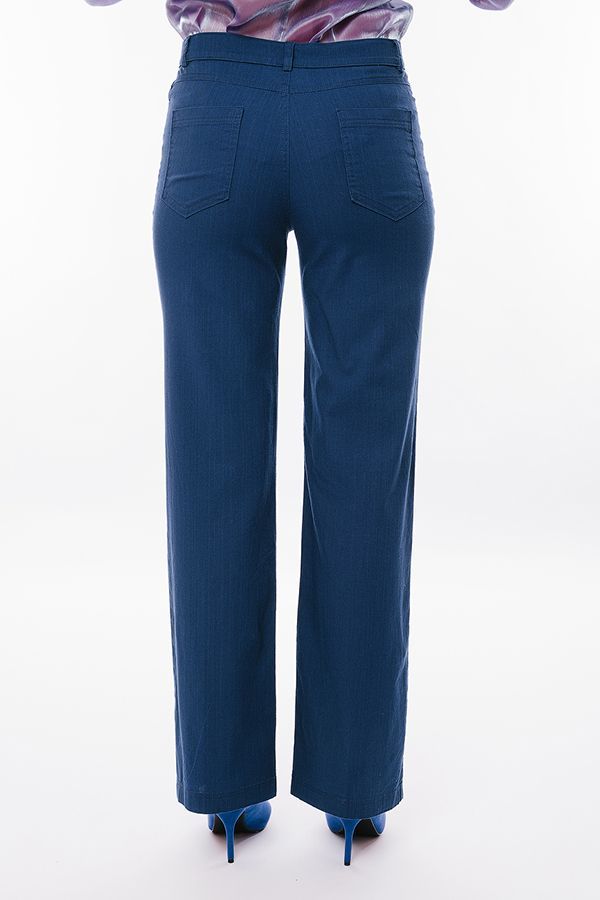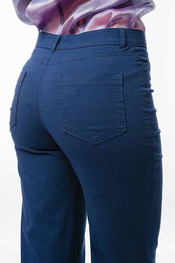 Брюки прямого силуэта из легкой хлопковой ткани. Спереди застежка на молнию и пуговицу, боковые карманы , сзади под кокеткой накладные карманы.