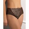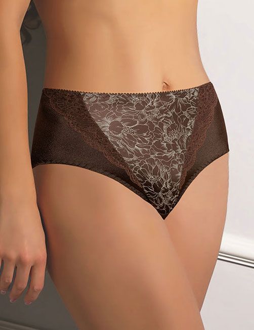Трусы-слип с высокой линий талии макси. Выполнены из эластичного принтованного полотна и эластичного кружева. Срезы по краю ножек обработаны на плоскошовной машине.