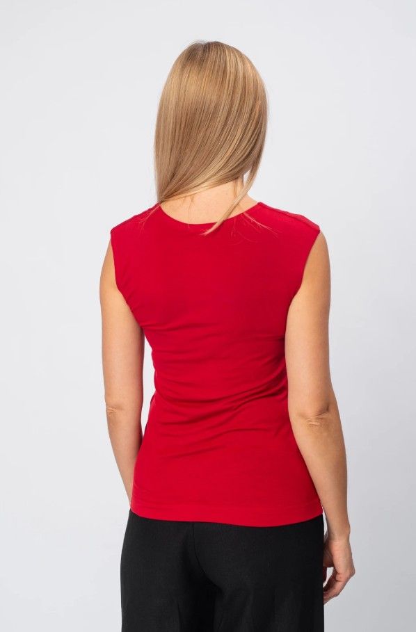 Модель хорошо сочетается в комплекте с жакетом или кардиганом, так как отсутствие рукавов позволит комфортное использование в многослойных образах.