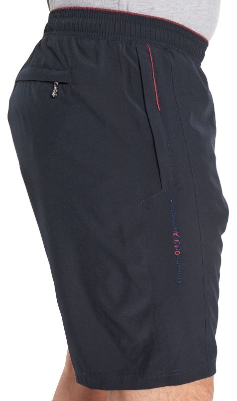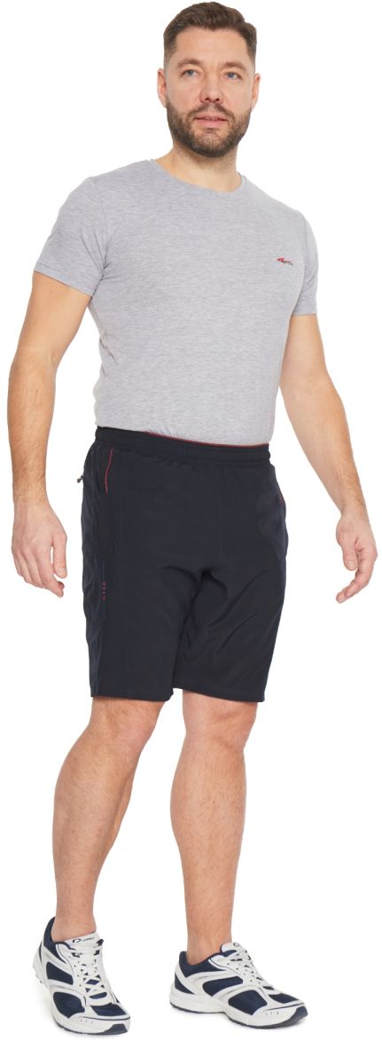 Спортивные шорты с 2-х цветным поясом на резинке. Длина – по колено.