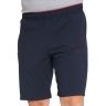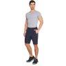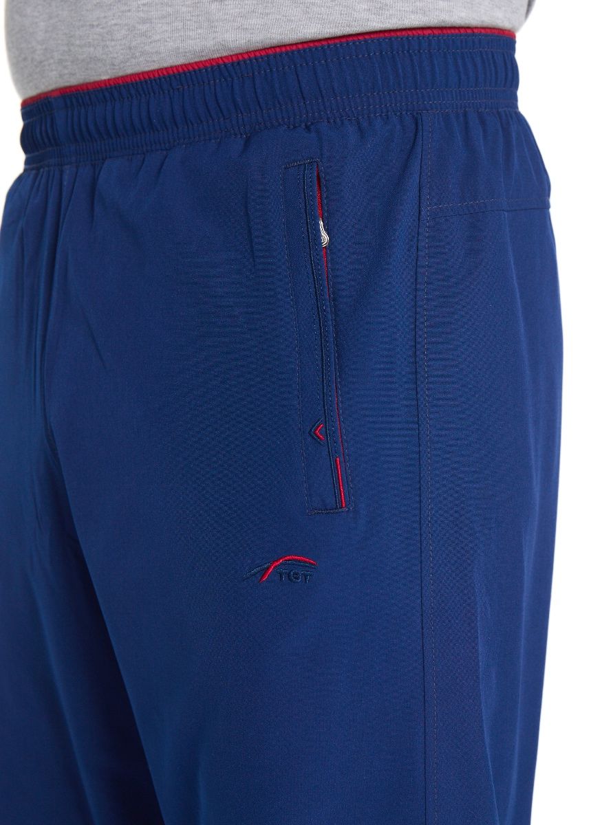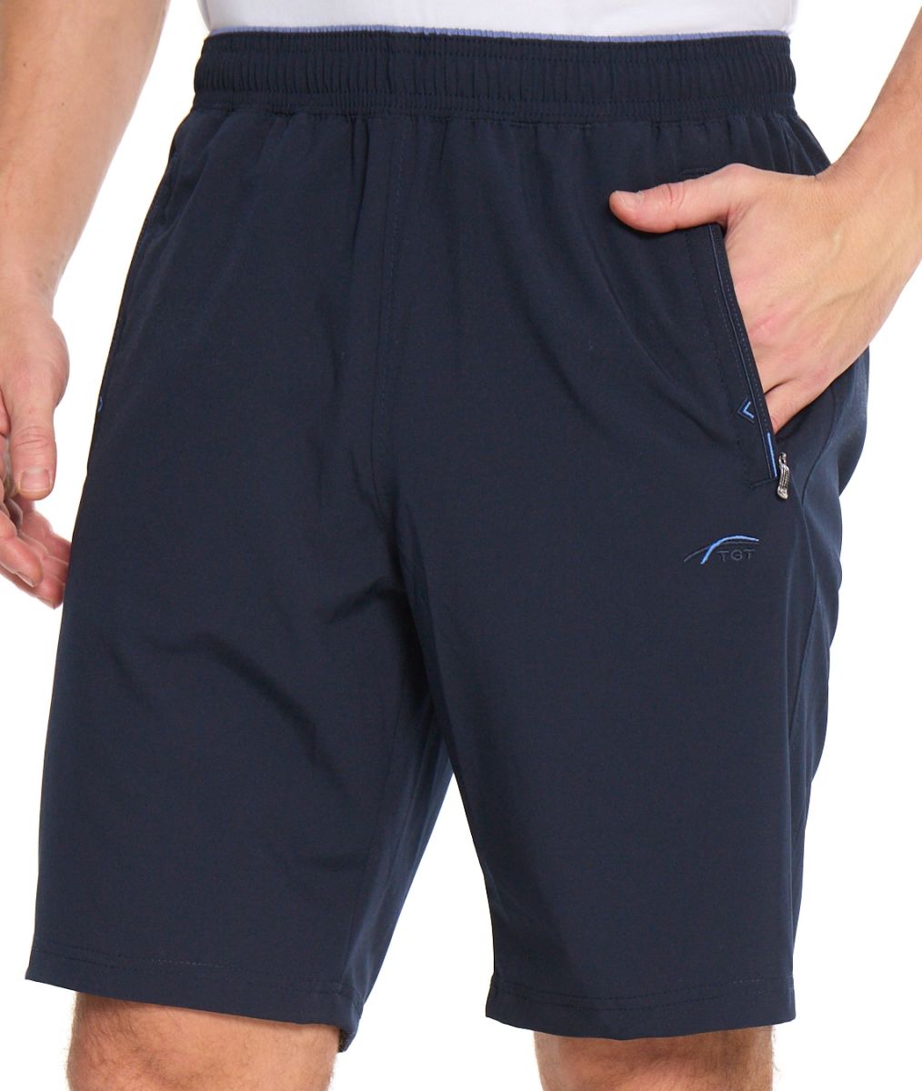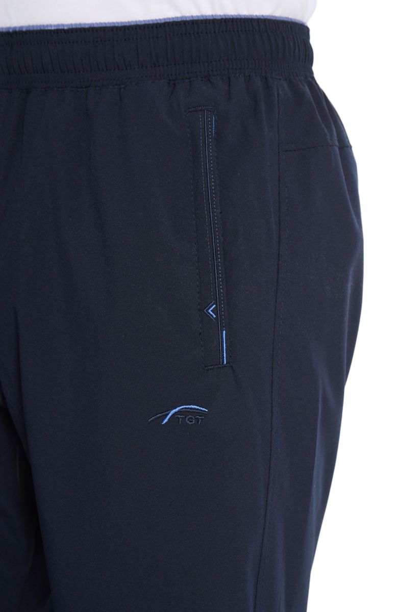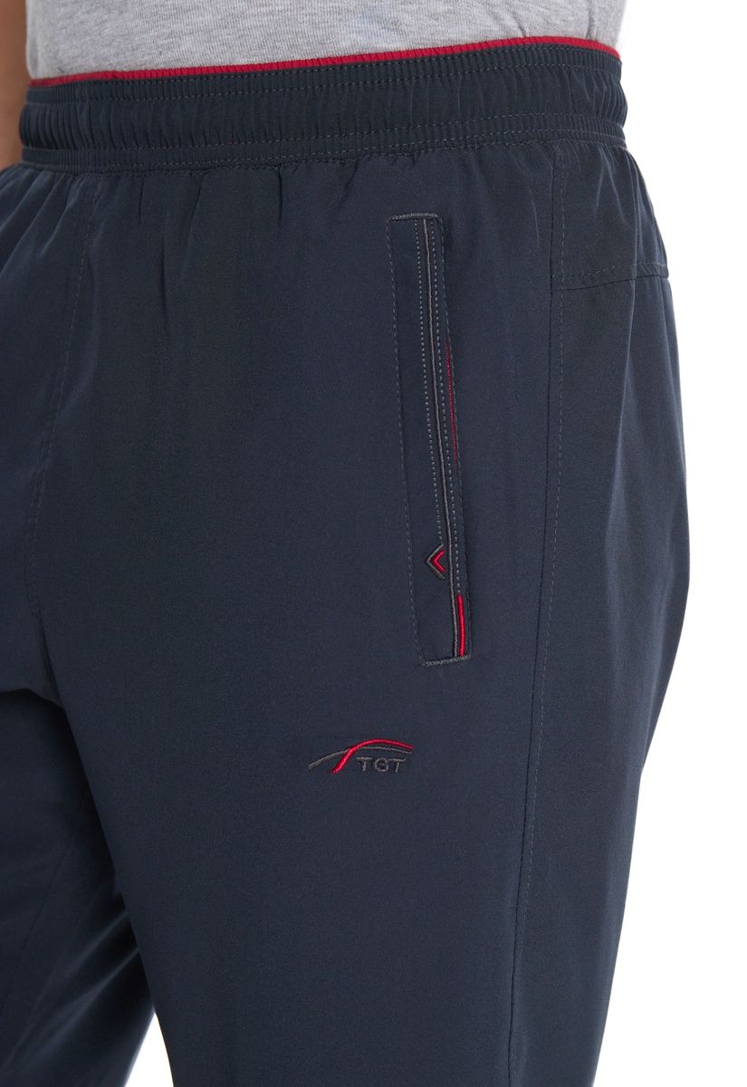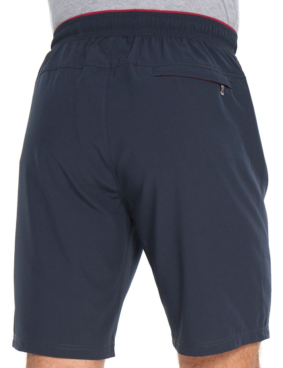 Длина до колена. Для дополнительной фиксации с внутренней стороны в пояс вставлен шнурок. Отшиты из тонкого гладкого синтетического материала (бистреч). Нити эластана расположены как по утку, так и по основе ткани, что придаёт материалу чрезвычайную подвижность, формоустойчивость и комфорт в носке. Передние карманы фиксируются молниями в цвет основного материала. Молнии прикрыты листочками, декорированными вышивками. Под левым карманом вышивка в фирменном стиле.