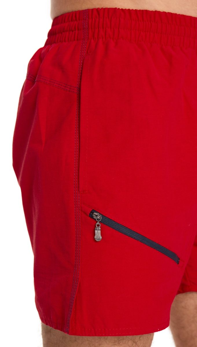 Отшиты из смесового материала на основе хлопка. . Длина – выше колена. Внутри бандаж. Для дополнительной фиксации с внутренней стороны в пояс вставлен шнурок. Вдоль боковых швов расположены входы в карманы. Дополнительный карман, фиксирующийся тёмно-синей молнией, находится внизу с правой стороны. Сзади кокетка. Боковые швы и шов кокетки тройные, выполнены нитками в тон молний.