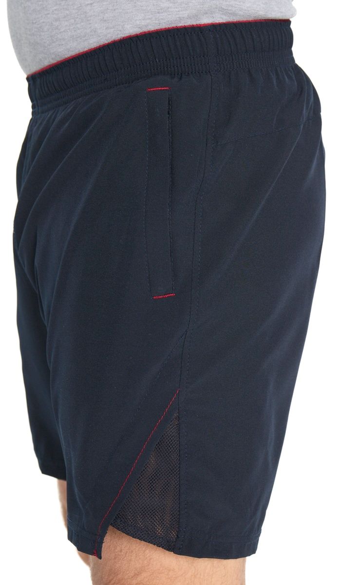 Короткие спортивные шорты с 2-х цветным поясом на резинке.