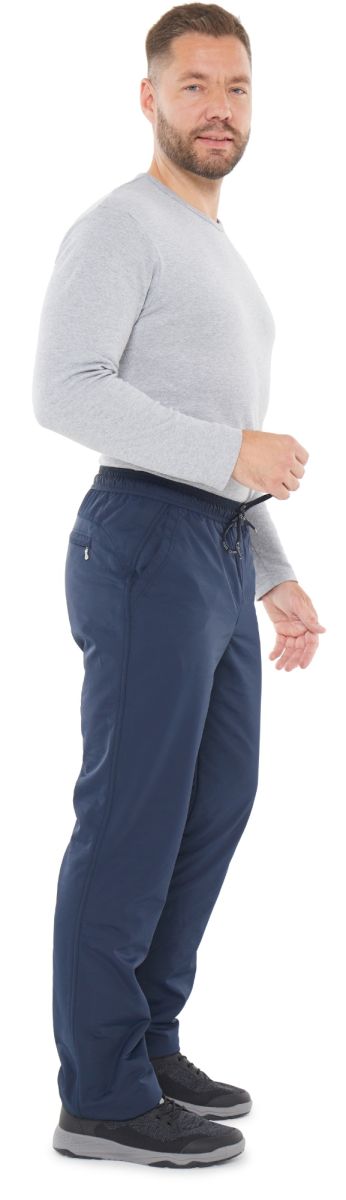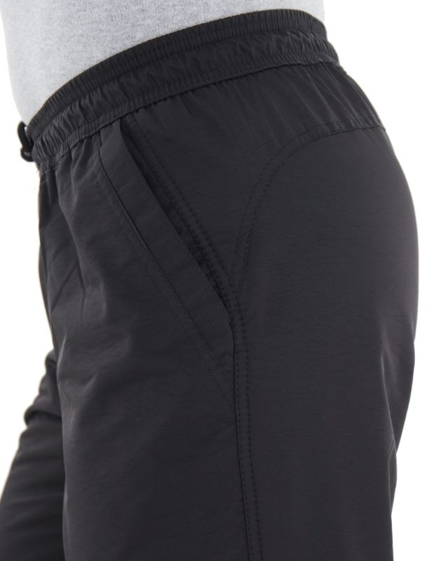 Зимние брюки с поясом на резинке. Пояс фиксируется шнурком с наименованием торговой марки. Брючины заужены книзу. Имитация гульфика. Передние карманы прямые открытые, задний на молнии под листочкой. Боковой шов тройной.
