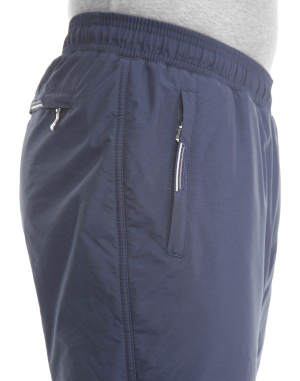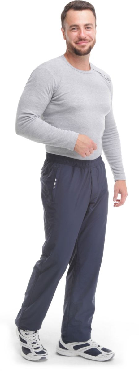 Зимние брюки с поясом на резинке. Брючины заужены книзу. С внутренней стороны пояс фиксируется шнурком. Передние и задний карманы на молниях под листочками, декорированными цветными вышивками. Под левым карманом 2-х цветная вышивка в фирменном стиле.