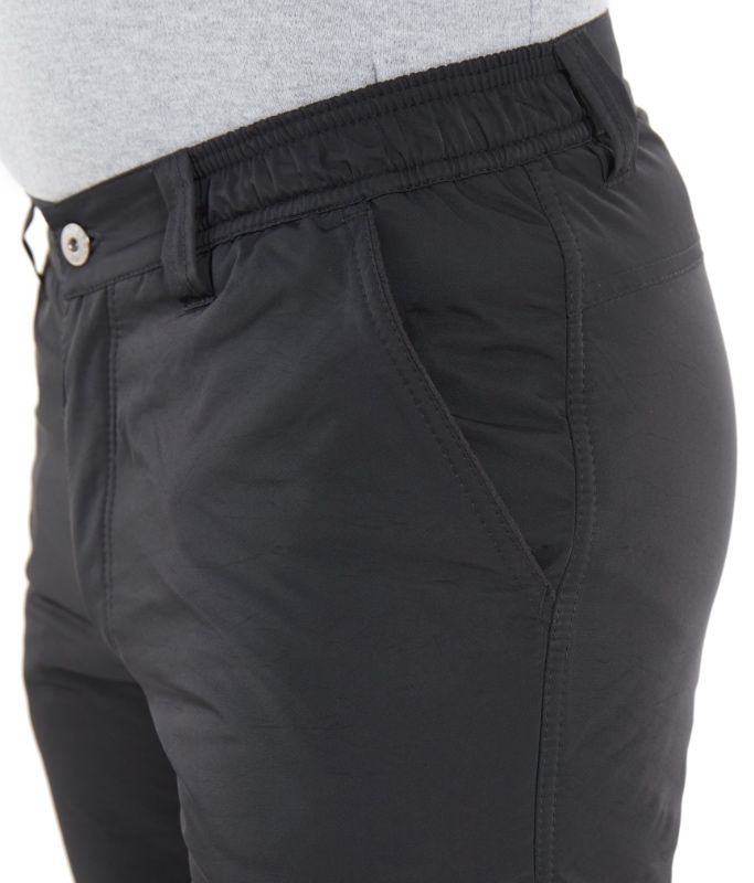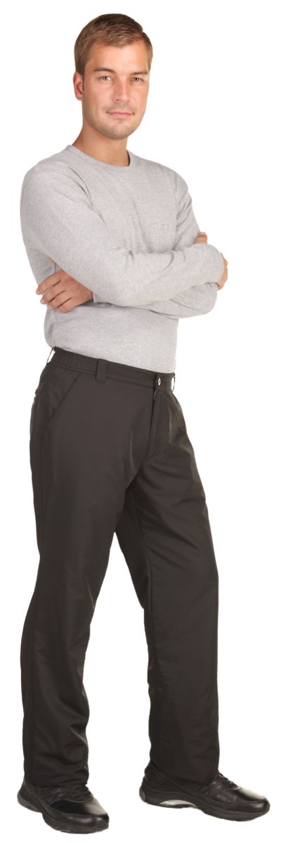 Зимние брюки с гульфиком на молнии. Пояс полужёсткий с резинкам и по бокам. Стандартное лекало. Передние карманы прямые, задний на молнии прикрыт листочкой, выведенной из-под кокетки. Боковой шов двойной. Линия "комфорт" позиционируется как повседневная одежда.