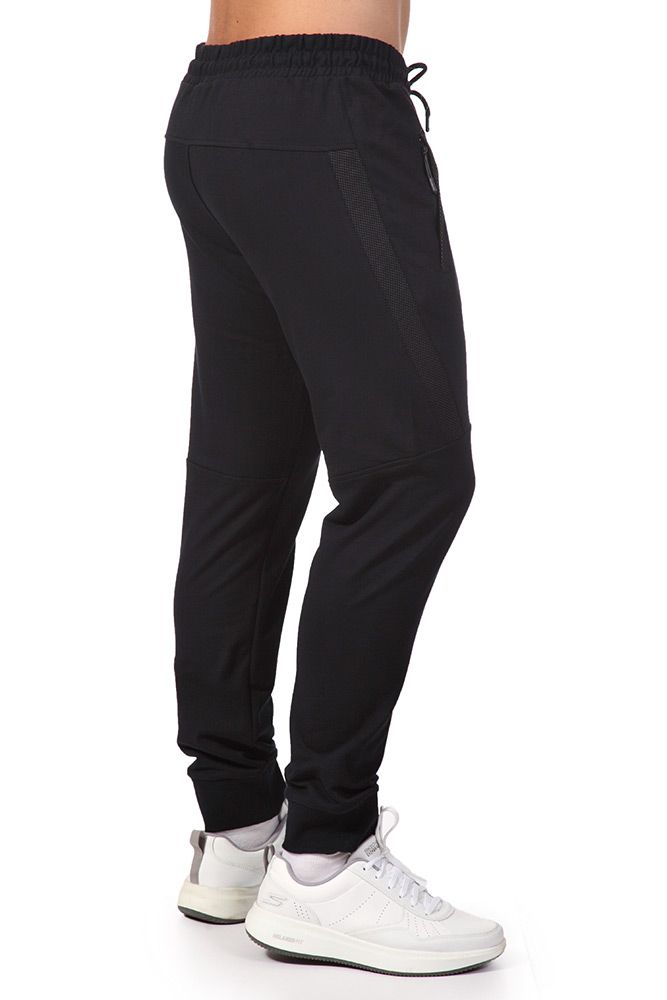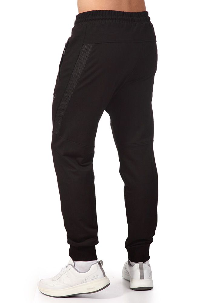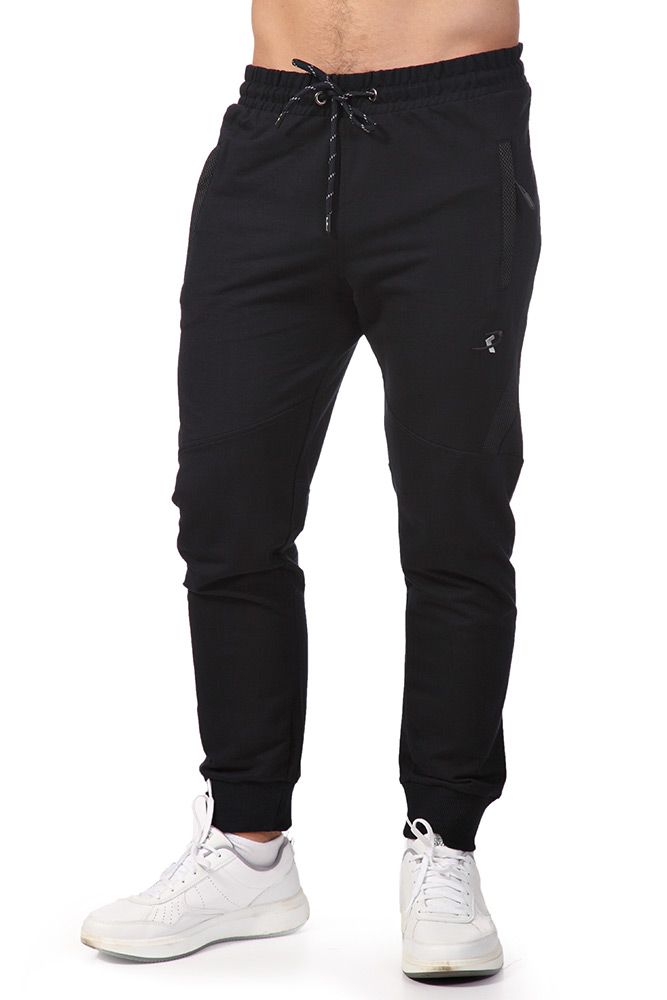 Молодежный стиль, зауженные к низу, прорезные карманы на молнии с листочками, пояс на внутренней резинке. В боковых швах вставки из отделочной ткани в верхней части брюк. Внизу - резинка (манжет).