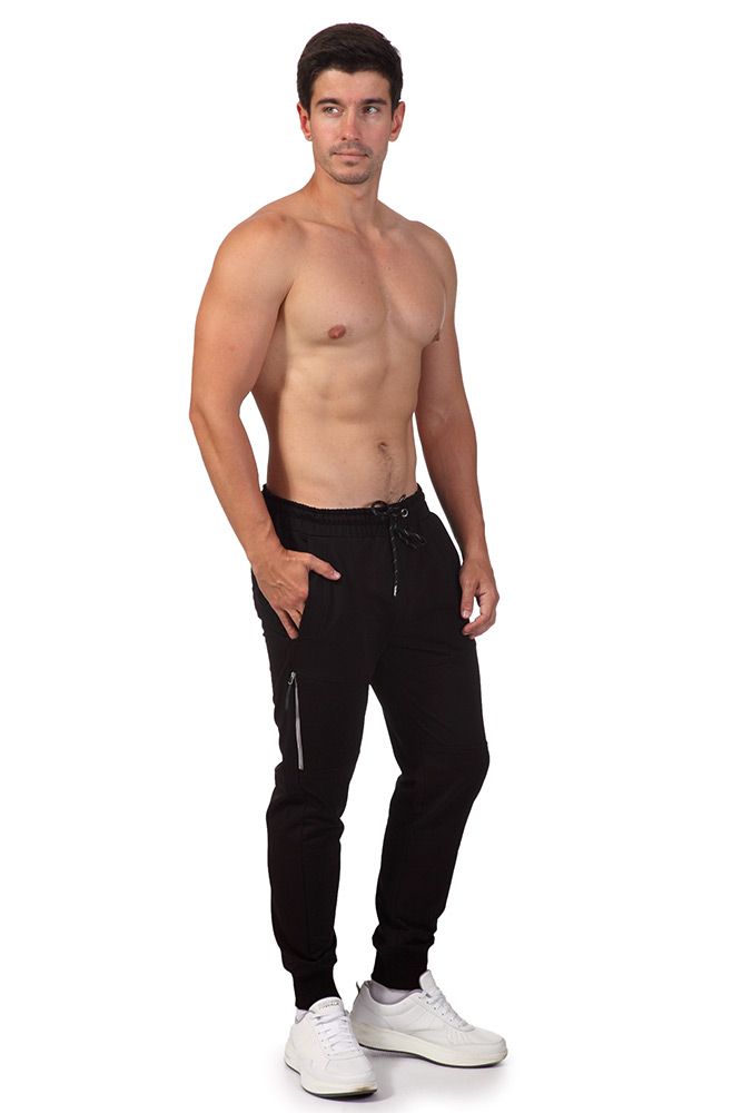 Молодежный стиль, зауженные к низу, боковые карманы, пояс на внутренней резинке. В боковом шве карман на молнии. Отрезной крой, кокетка . Внизу - резинка (манжет).