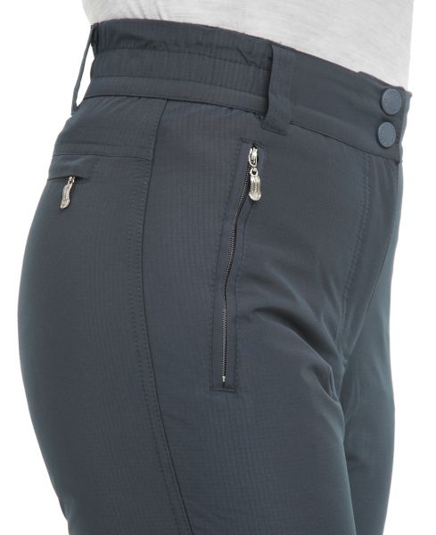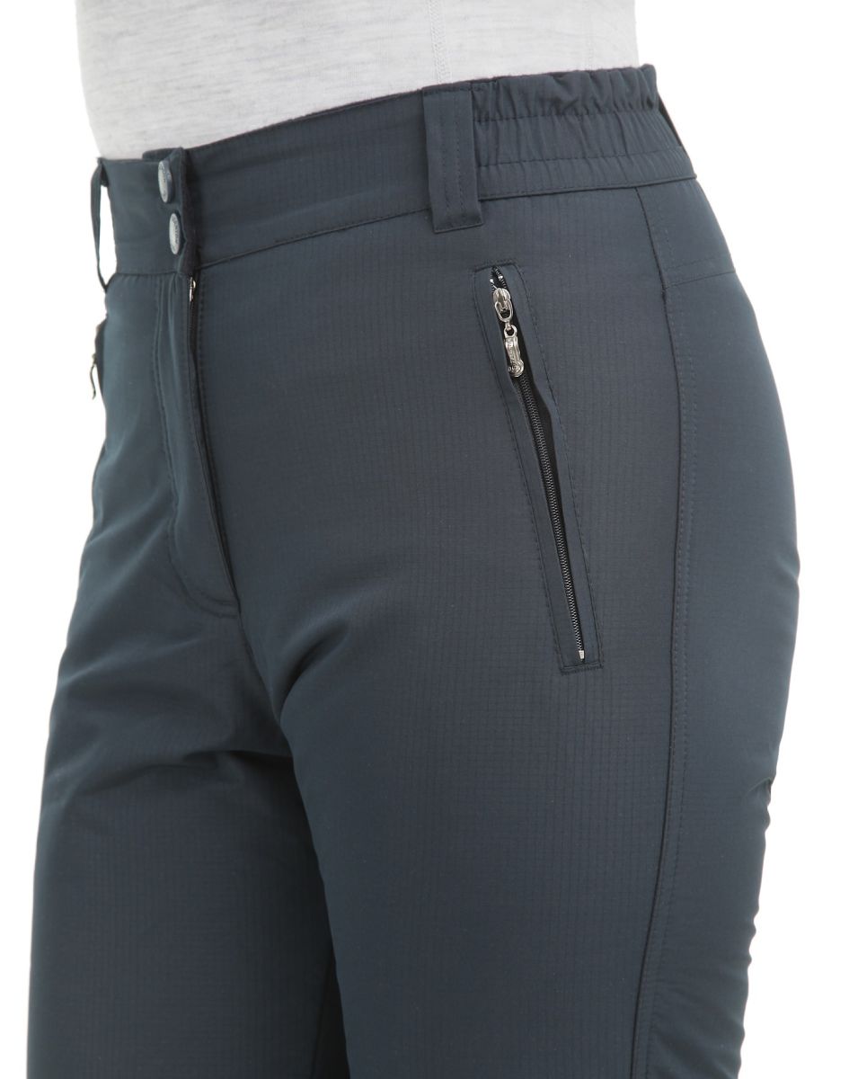 Передняя ткань данных брюк выполнена из материала Ribstop pongee PVC, W/P с дополнительной водоотталкивающей пропиткой. Данный материал активно изпользуют в изготовлении горнолыжных брюк.