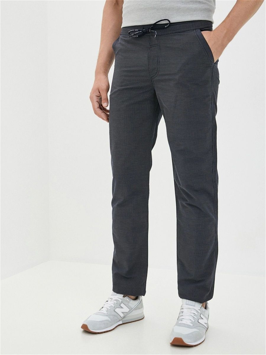 Летние брюки на резинке со шнурком в поясе. Брючины заужены книзу. Имитация гульфика.