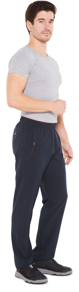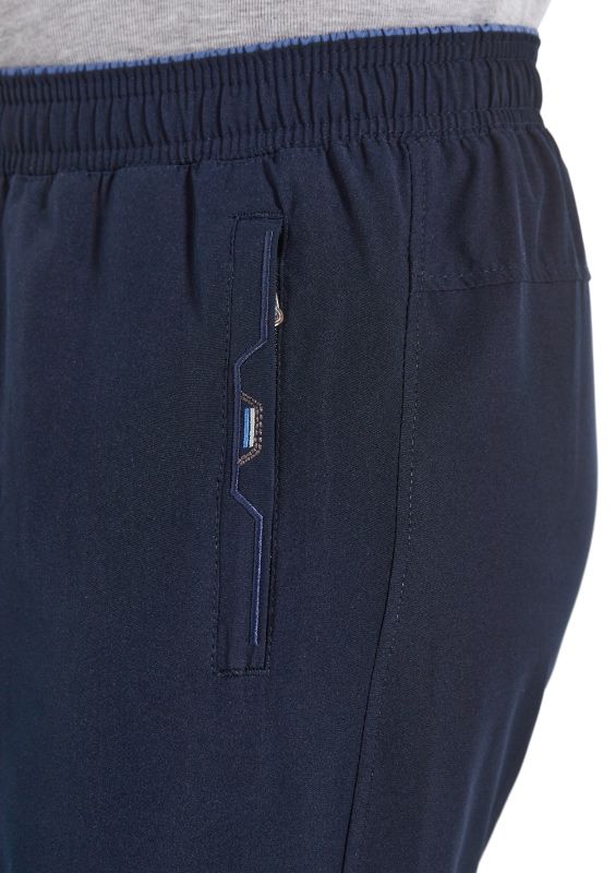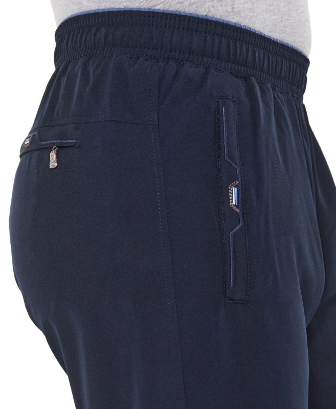 Летние брюки с 2-х цветным поясом на резинке, отшиты из тонкого гладкого синтетического материала (бистреч).