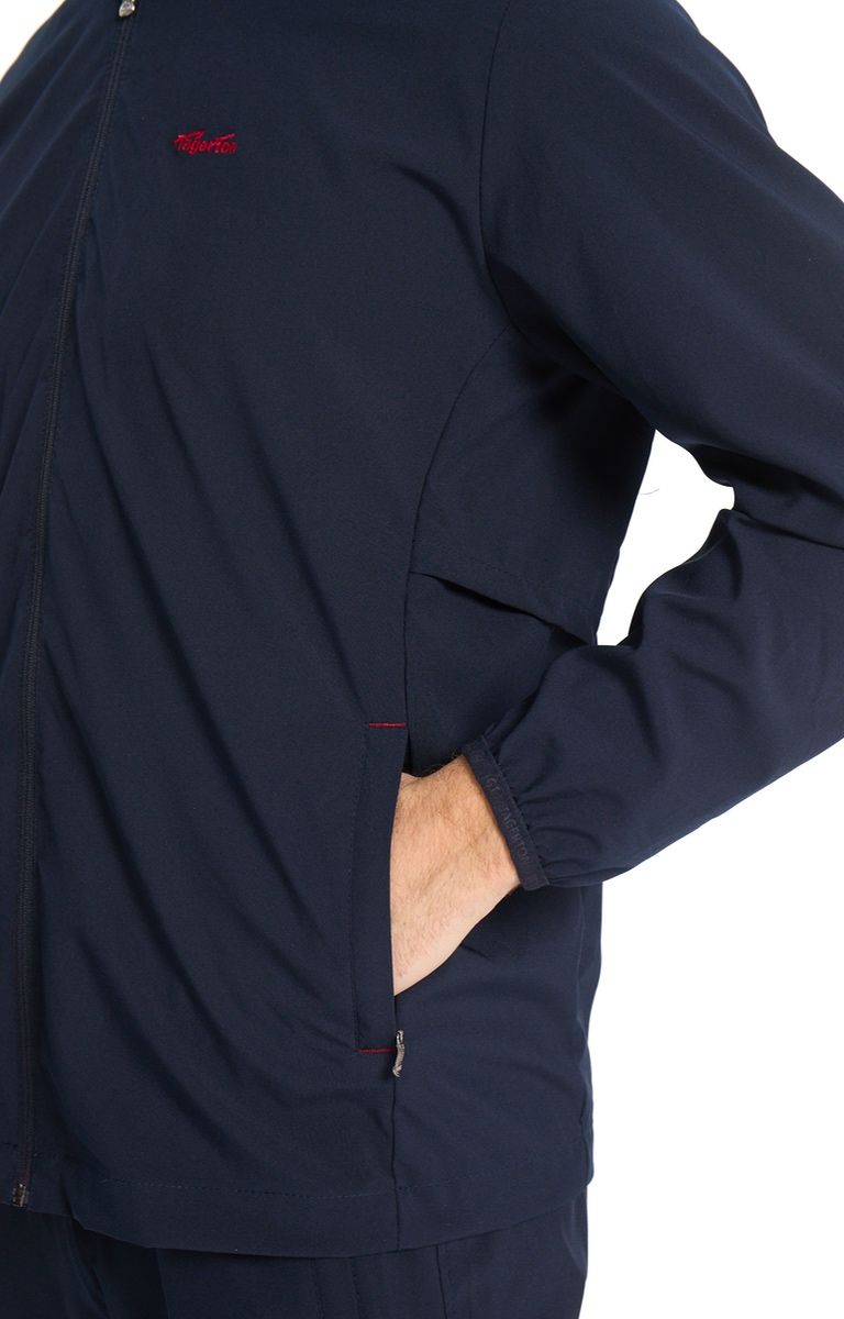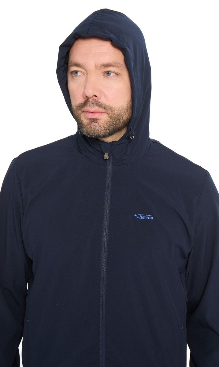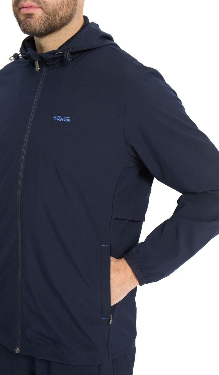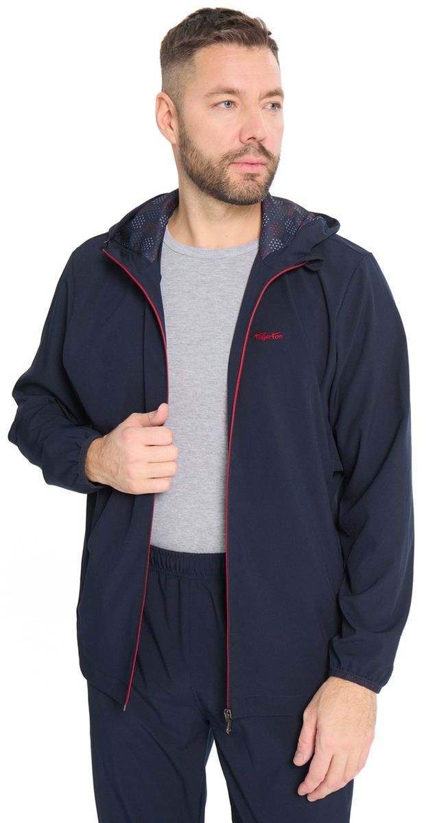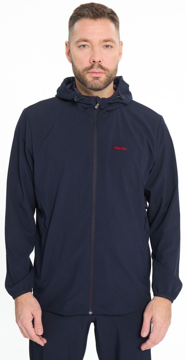 Идеально подходит для занятия спортом на открытом воздухе в летний период. Ветровка с прямого силуэта с капюшоном. Молния в борт полупотайная с цветным зубом (гранат или парламент). Капюшон с внутренней стороны отделан трикотажной сеткой с цветным принтом. Ширина капюшона регулируется кулиской из шляпной резинки с пластиковыми стопперами. Низы рукавов обработаны окантовочной резинкой с логотипом в фирменном стиле Tagerton. Для дополнительной воздухопроницаемости подмышками предусмотрены специальные вентиляционные разрезы, закрытые трикотажной сеткой. Передние карманы на молниях под листочками, декорированными цветными закрепками. С левой стороны вышивка в тон отделки. Брюки с поясом на резинке. Фиксация пояса производится шнурком, вставленным с внутренней стороны. Передние карманы на молниях под листочками.
