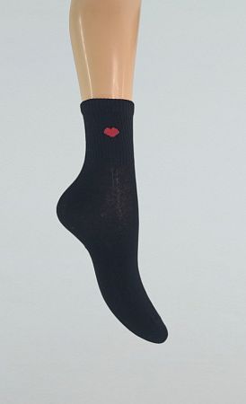 Носки женские, белые, черные с сердечком, рибана