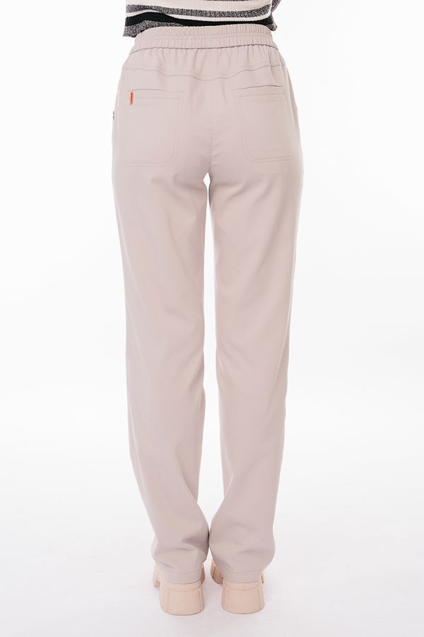 Модель брюк в спортивном стиле без застежки (пояс на резине). Детали: спереди имитация гульфика, боковые карманы с хольнитенами, сзади, под кокеткой, внутренние карманы с листочкой. *Числовые параметры соответствуют размеру 46. Длина по внутреннему шву: 85 см. Ширина по линии низа: 20 см. Размер модели на фото: 44. Параметры модели: 86-63-94. Рост модели на фото: 173 см.
