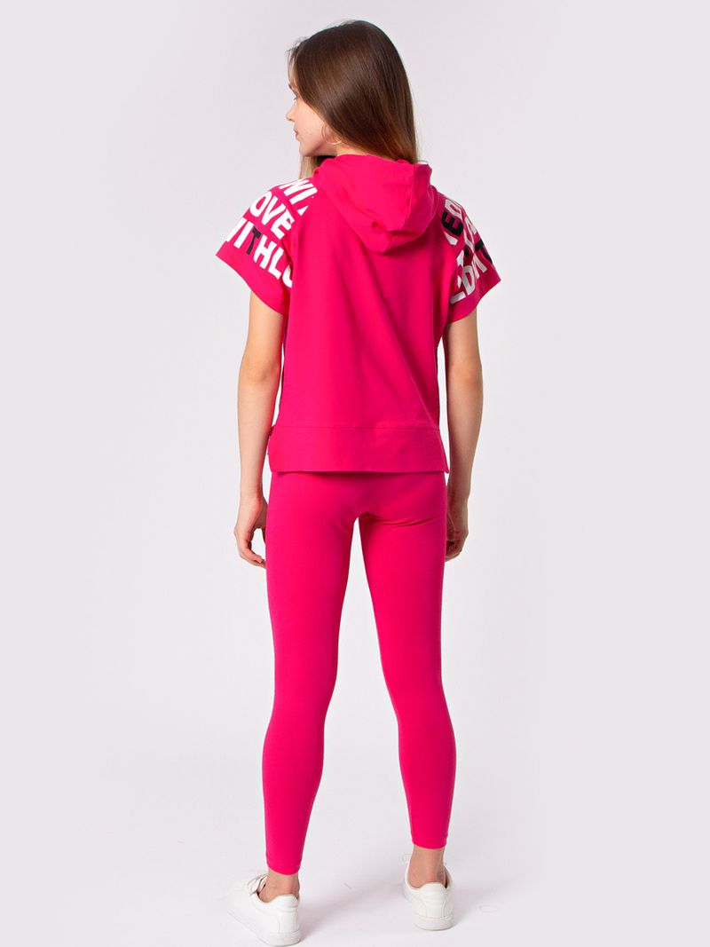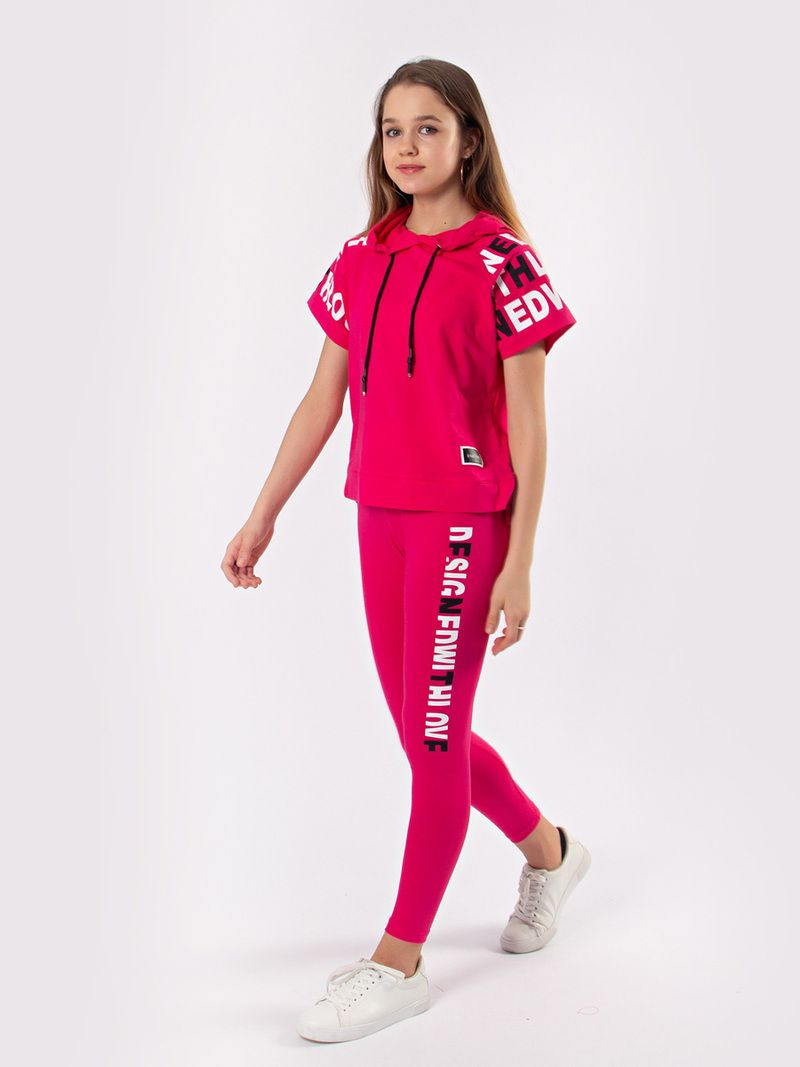 Стильный костюм – это удобный готовый образ, который девочка может надеть на прогулку, занятия физкультурой или спортом. Ткани легкие, поэтому в них не будет жарко. Хорошо тянутся – значит подходят для активных детей.