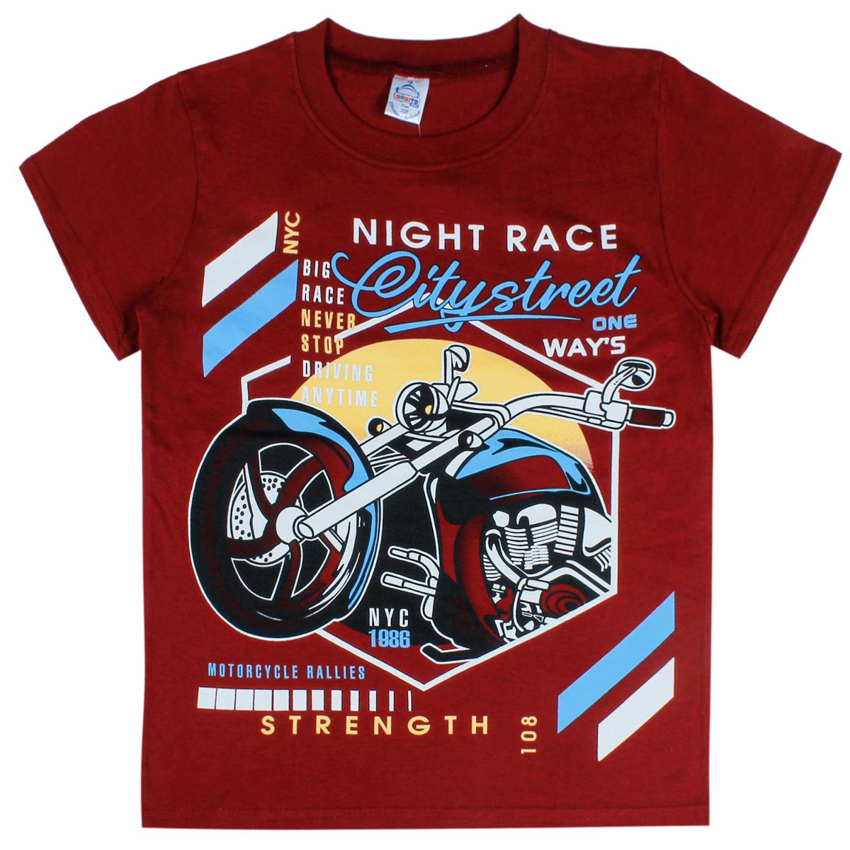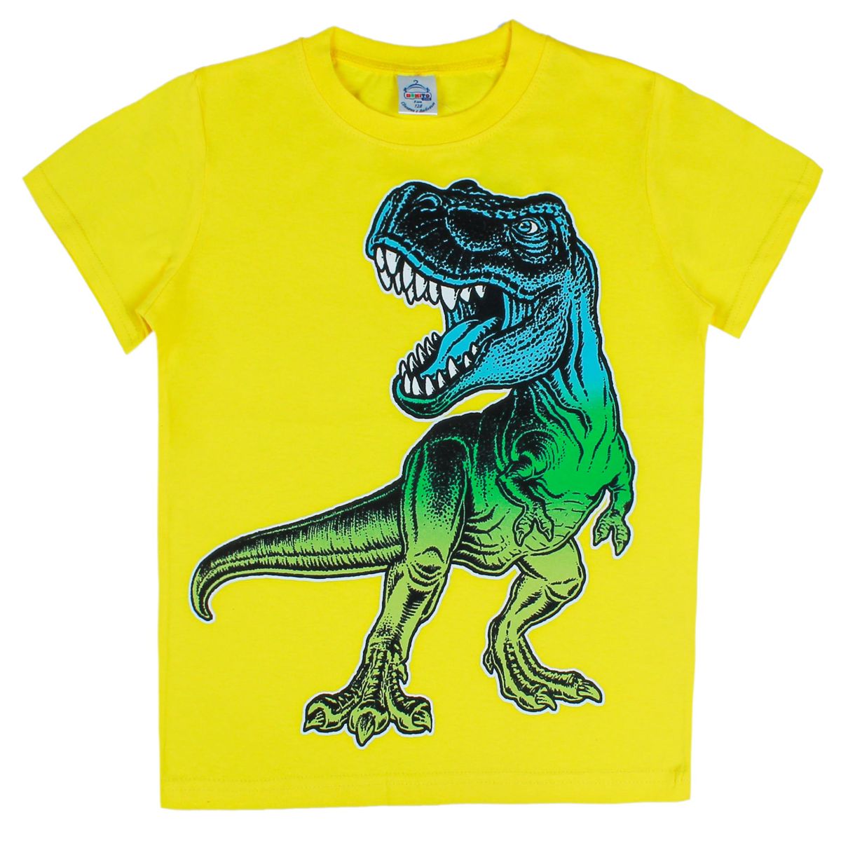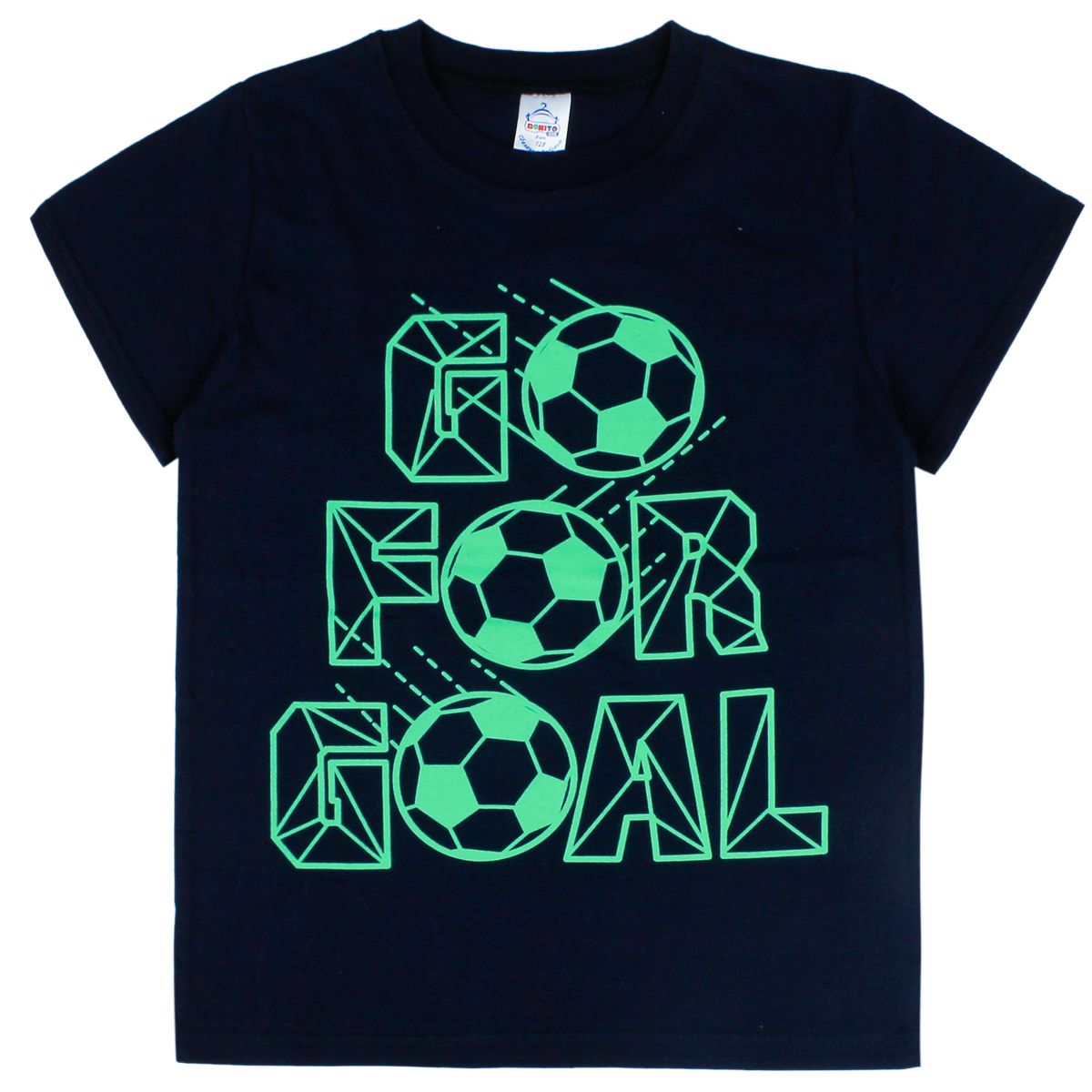 Отличная футболка для мальчиков, изготовленная из хлопкового полотна. Прямой крой изделия не сковывает движений. Футболка оформлена печатным принтом. Материал: кулирная гладь.